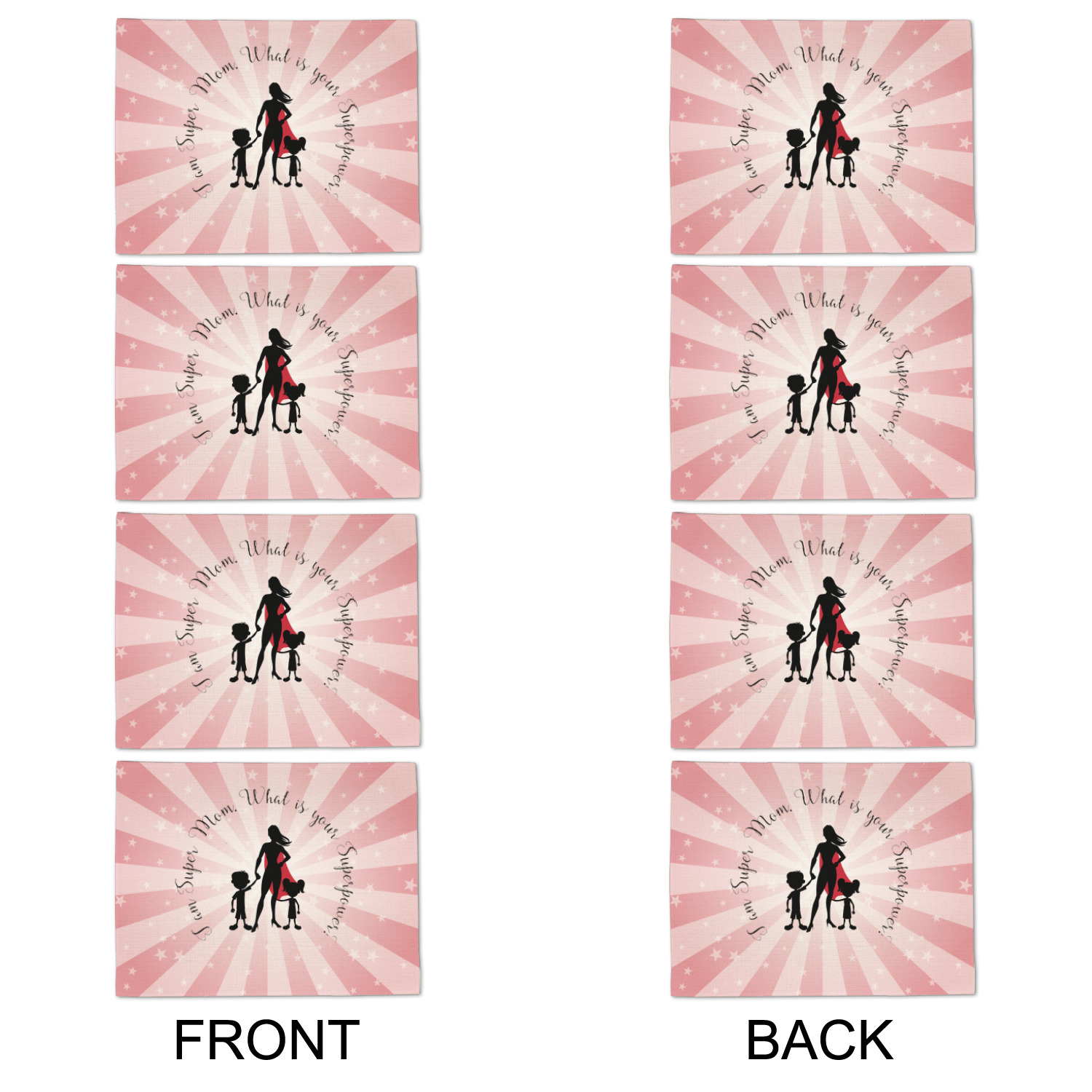 Our Super Mom design is perfect for your Mother's Day Gift. Moms today are truly super heroes with all that they have to balance. Our adorable design depicts a super hero mom / woman holding hands with a little boy and a little girl. Our super hero mom is wearing a red cape. We used a blush colored starburst with stars to highlight our beautiful mother. We personalized with our new circular text and used the words "I am a Super Mom. What is your Superpower?". We use a scripty girly font. We think the design looks outstanding!