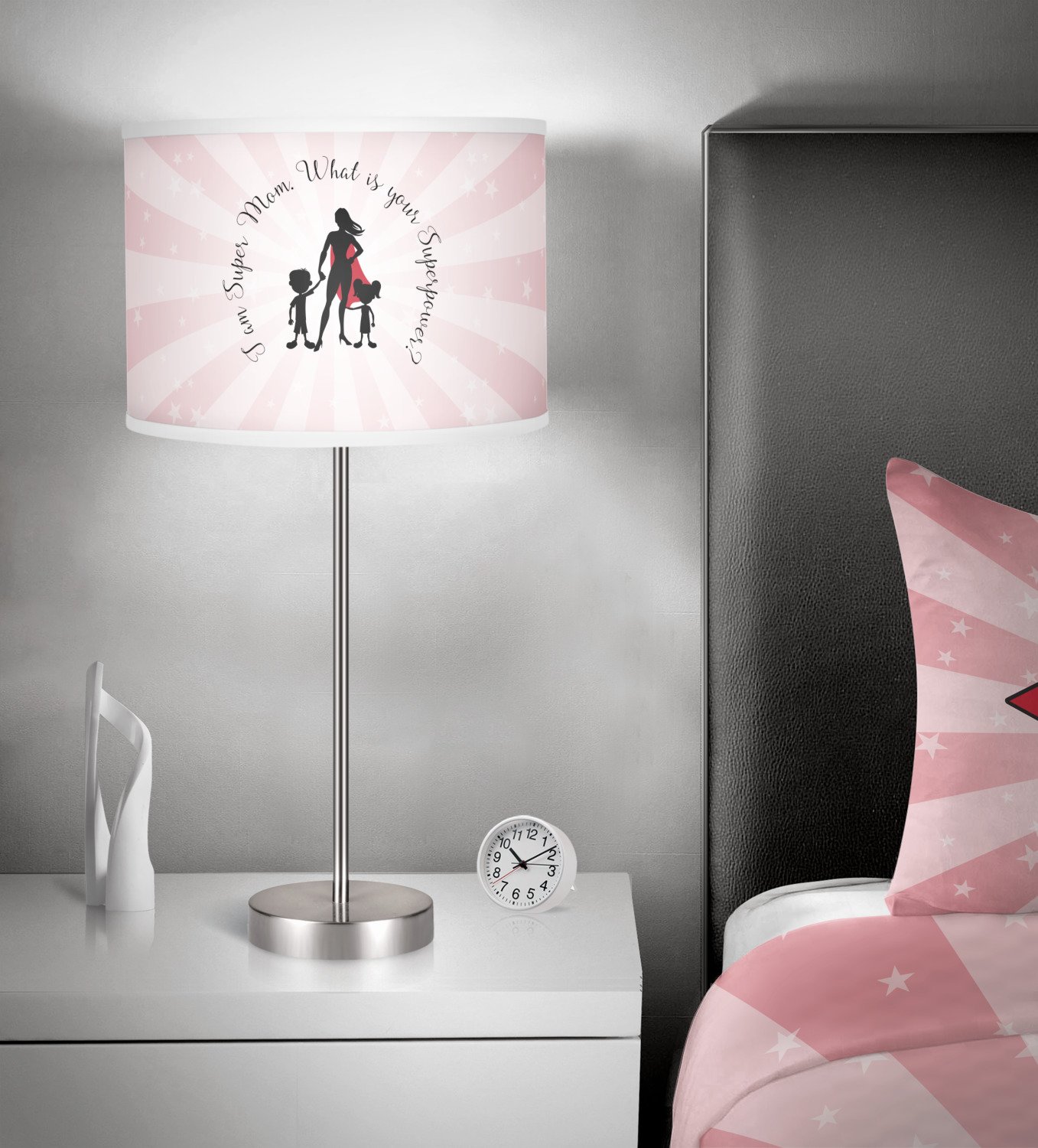 Our Super Mom design is perfect for your Mother's Day Gift. Moms today are truly super heroes with all that they have to balance. Our adorable design depicts a super hero mom / woman holding hands with a little boy and a little girl. Our super hero mom is wearing a red cape. We used a blush colored starburst with stars to highlight our beautiful mother. We personalized with our new circular text and used the words "I am a Super Mom. What is your Superpower?". We use a scripty girly font. We think the design looks outstanding!