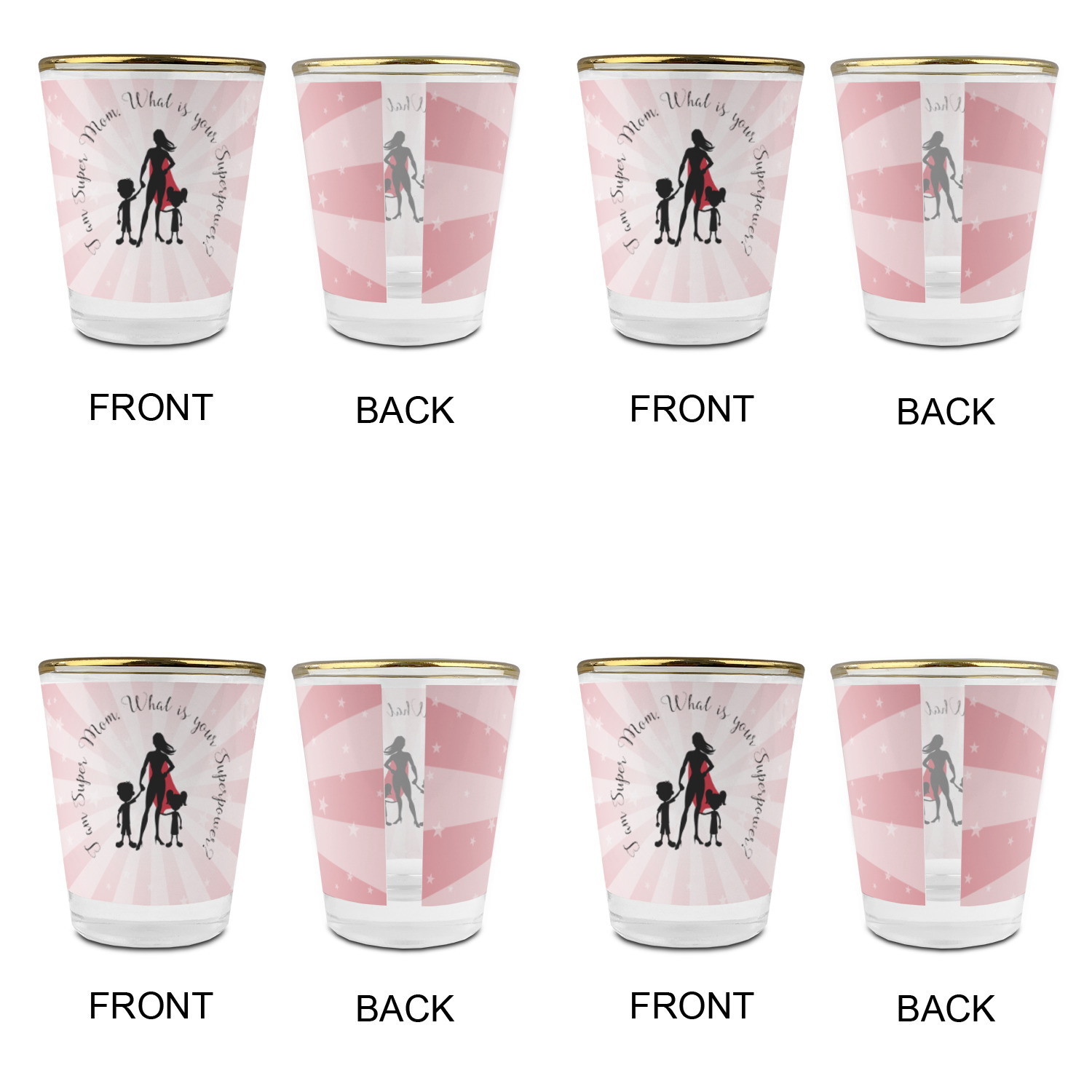 Made with frosted glass, these shot glasses are printed in full color with the design of your choice. They are a standard 1.5oz shot glass and are 2.4" tall. The print is wrapped around the shot glass in a full wrap and boldly displays your customization.