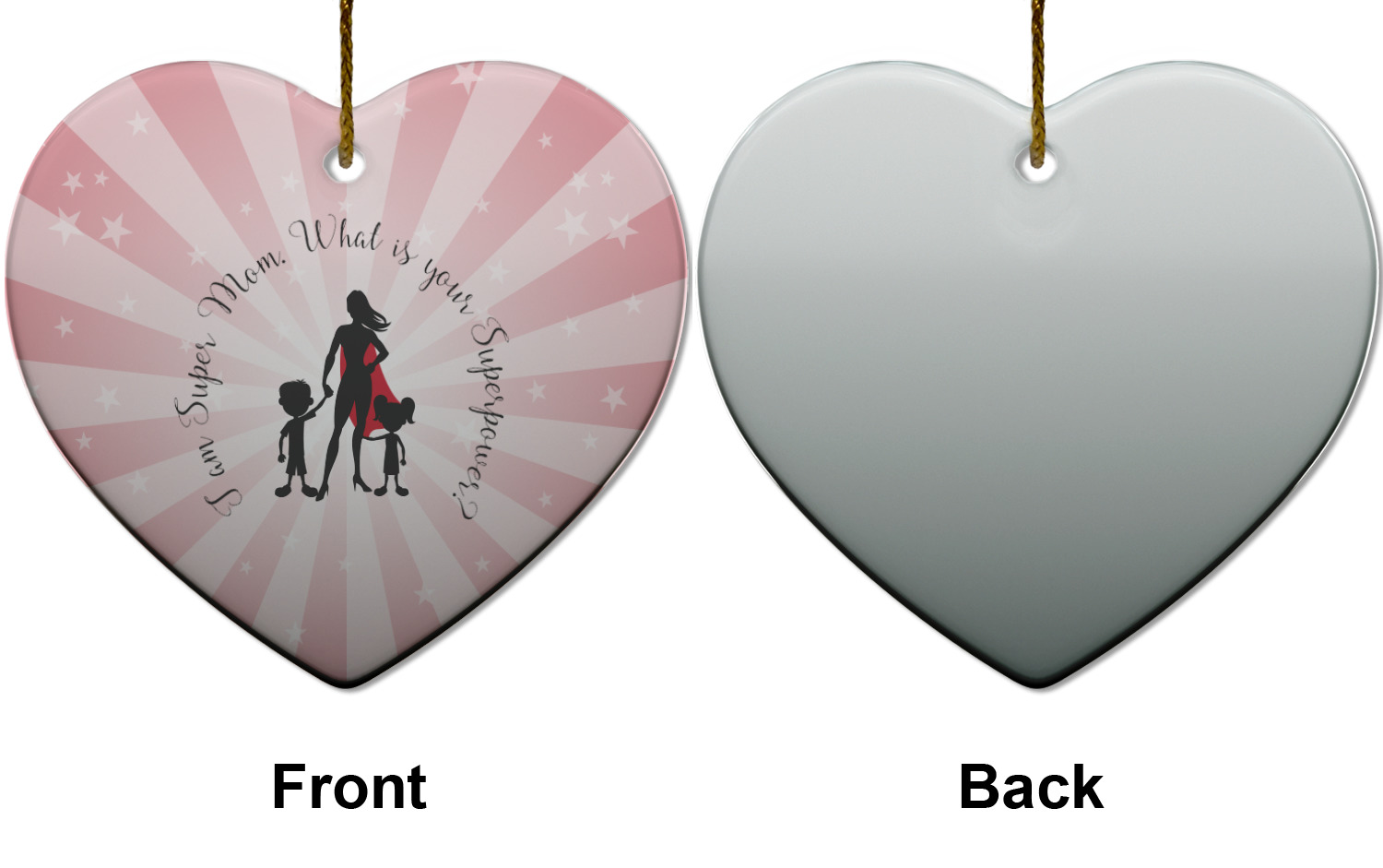 Have a happy holiday and share the joy of Christmas with your loved ones by hanging up personalized ceramic ornaments! Ornaments add a touch of who you are and the things you love onto the Christmas tree! Create custom ornaments for the kids and have them hang up their own star with their name, or pay remembrance this holiday to missed loved ones with our ceramic heart ornament. Browse many of our unique designs and customize them the way you'd like! From monograms, logos, and patterns, we have it all! You can even upload a photo of your family for us to print onto the ornament! The possibilities are endless!