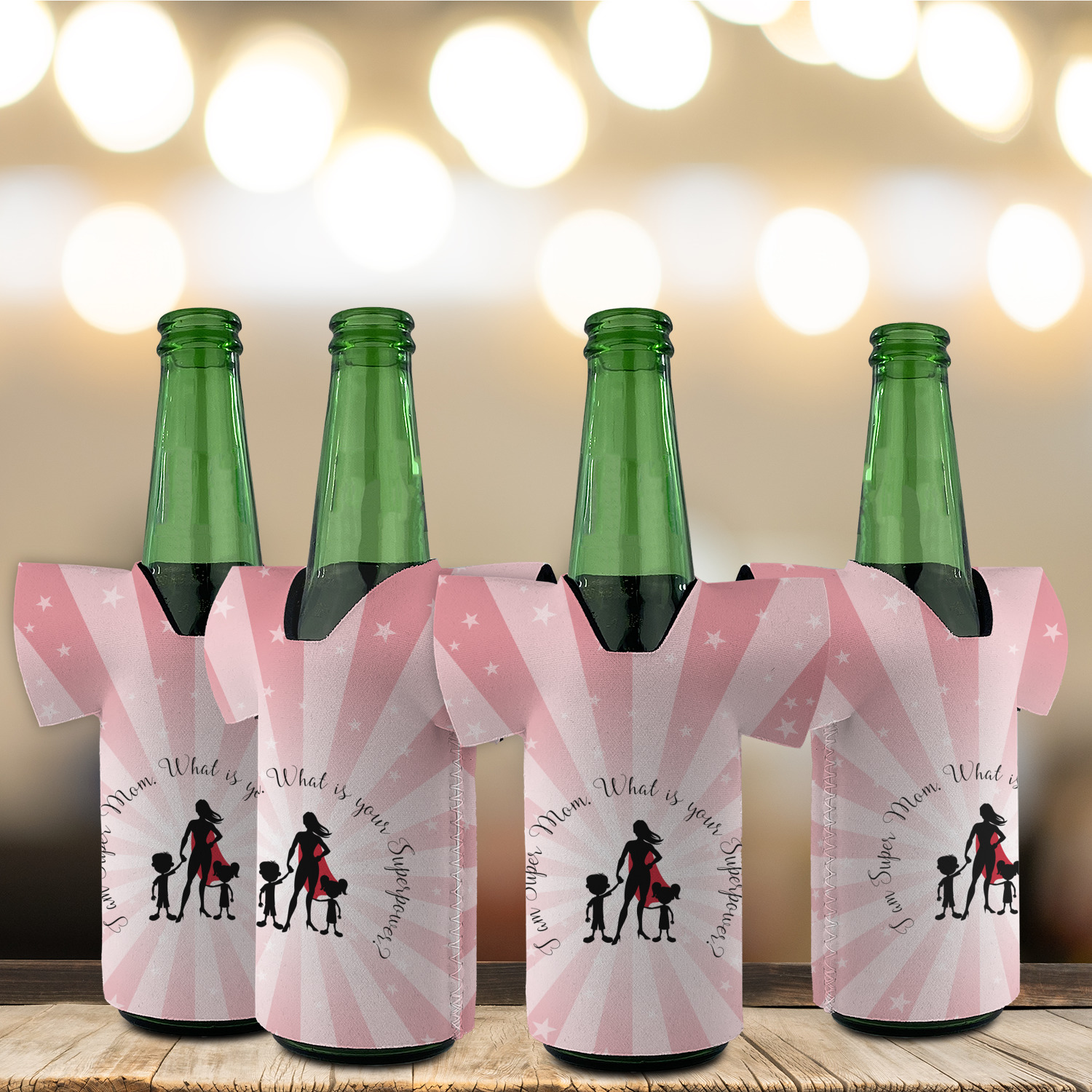 Fabricated from a thick, insulating neoprene, these custom can sleeve keep your drink cold, while proudly displaying your customization on all sides. These can sleeves are designed to fit most 12oz bottles. Available in two types - zipper cooler for insulating the full bottle or the jersey style for sports season. Also available as a single can sleeve or in a set of 4 for you to share with friends and family. For convenient storage, they can also be folded.