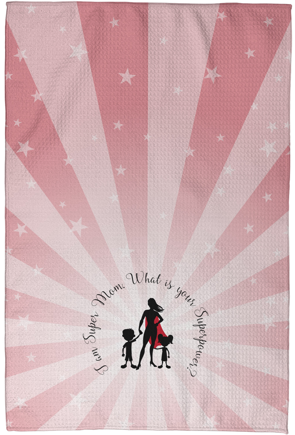 Each waffle weave kitchen towel is approximately 16 x 24 inches with your design printed on one side and the back is white.