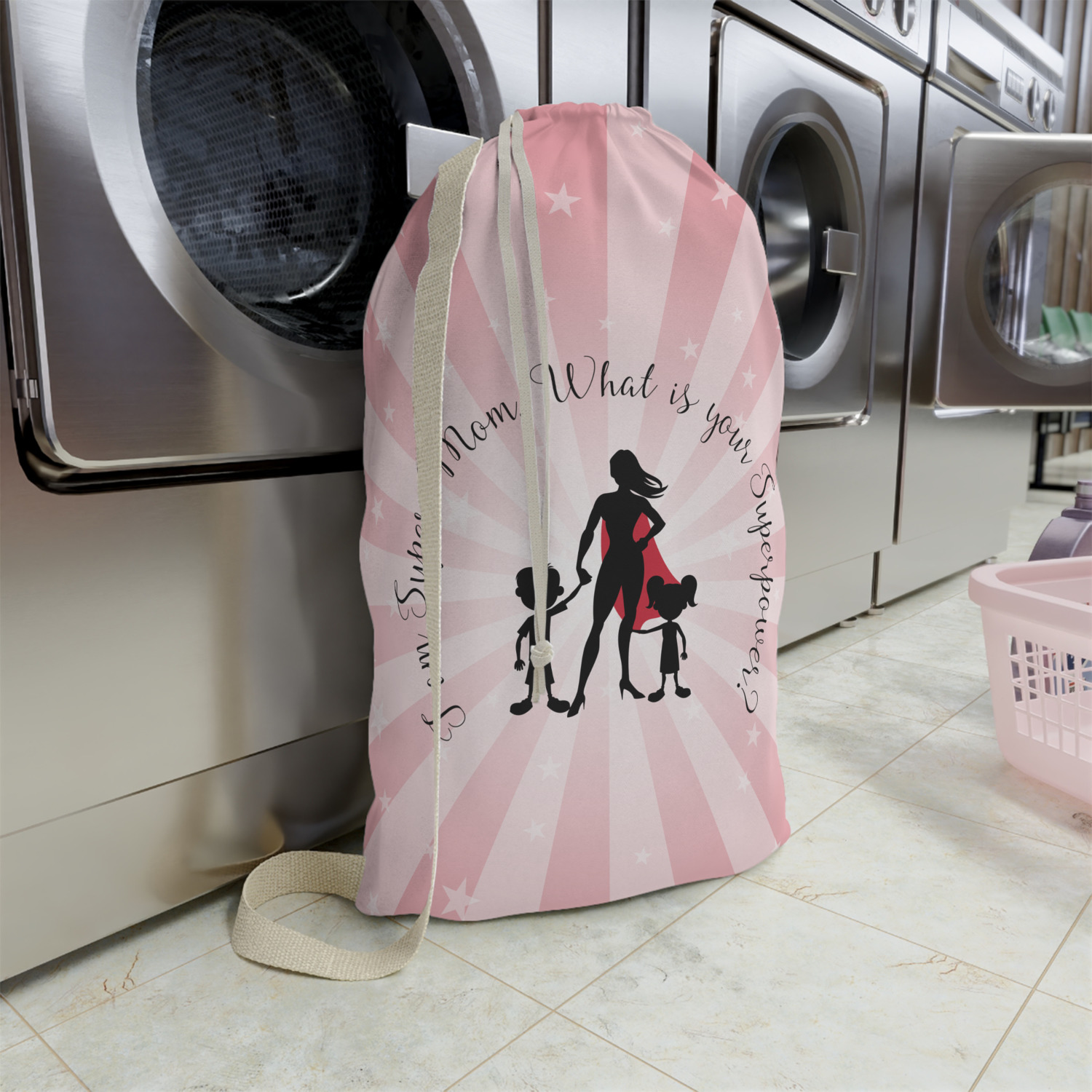 Carry your laundry in style with these customized laundry bags. Available in two sizes, featuring a natural colored woven strap and a cinch cord, these bags hold a lot of clothes or anything else you want to fit in them.