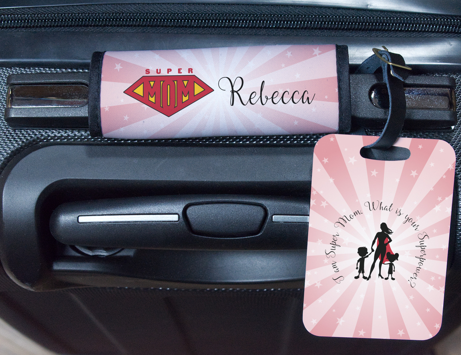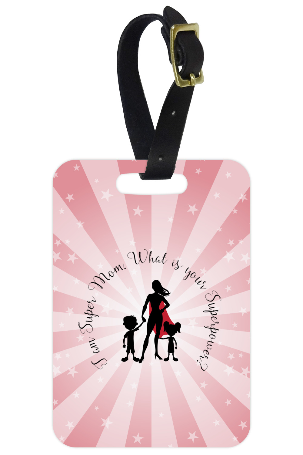 Our Super Mom design is perfect for your Mother's Day Gift. Moms today are truly super heroes with all that they have to balance. Our adorable design depicts a super hero mom / woman holding hands with a little boy and a little girl. Our super hero mom is wearing a red cape. We used a blush colored starburst with stars to highlight our beautiful mother. We personalized with our new circular text and used the words "I am a Super Mom. What is your Superpower?". We use a scripty girly font. We think the design looks outstanding!