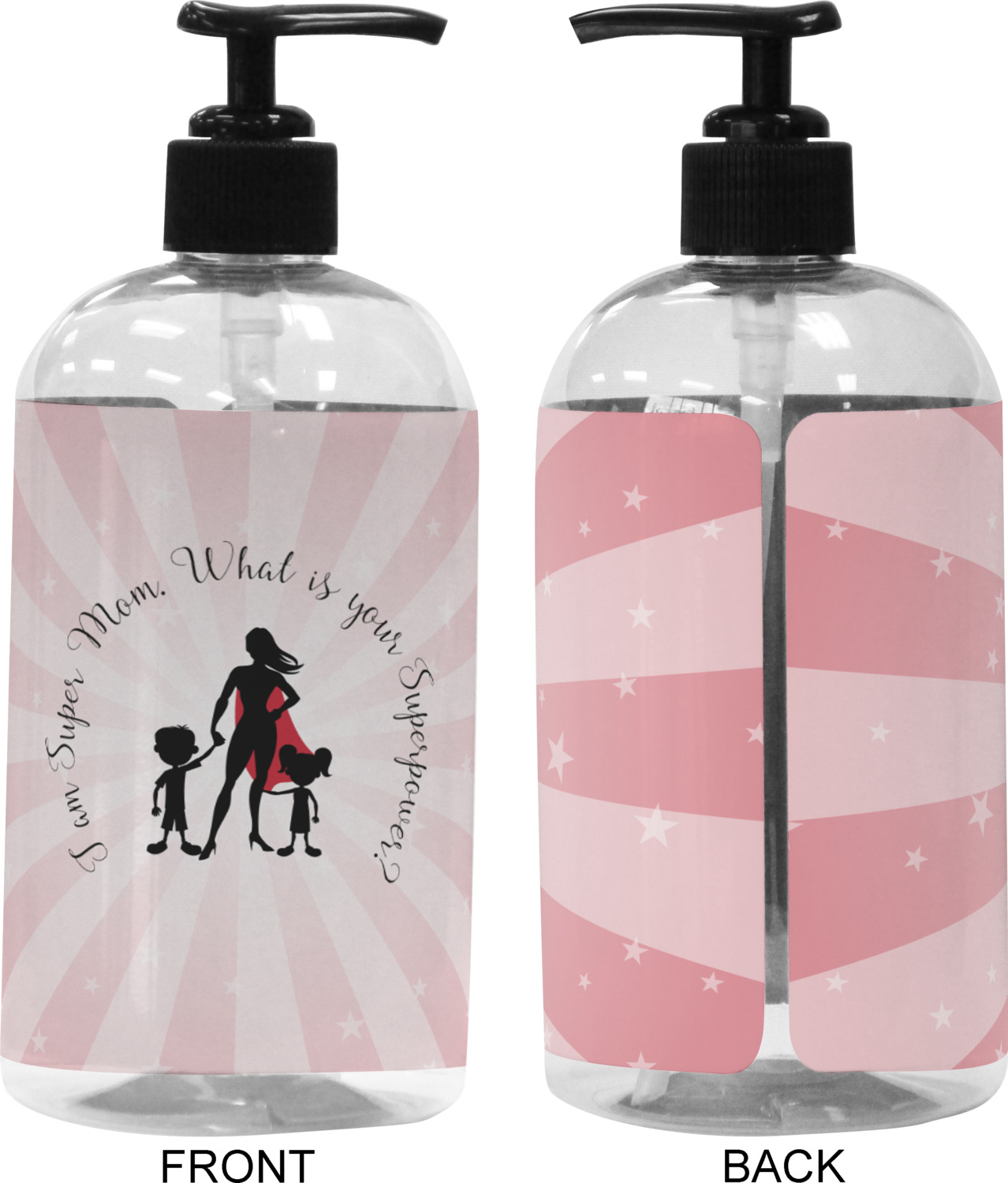 Our Super Mom design is perfect for your Mother's Day Gift. Moms today are truly super heroes with all that they have to balance. Our adorable design depicts a super hero mom / woman holding hands with a little boy and a little girl. Our super hero mom is wearing a red cape. We used a blush colored starburst with stars to highlight our beautiful mother. We personalized with our new circular text and used the words "I am a Super Mom. What is your Superpower?". We use a scripty girly font. We think the design looks outstanding!