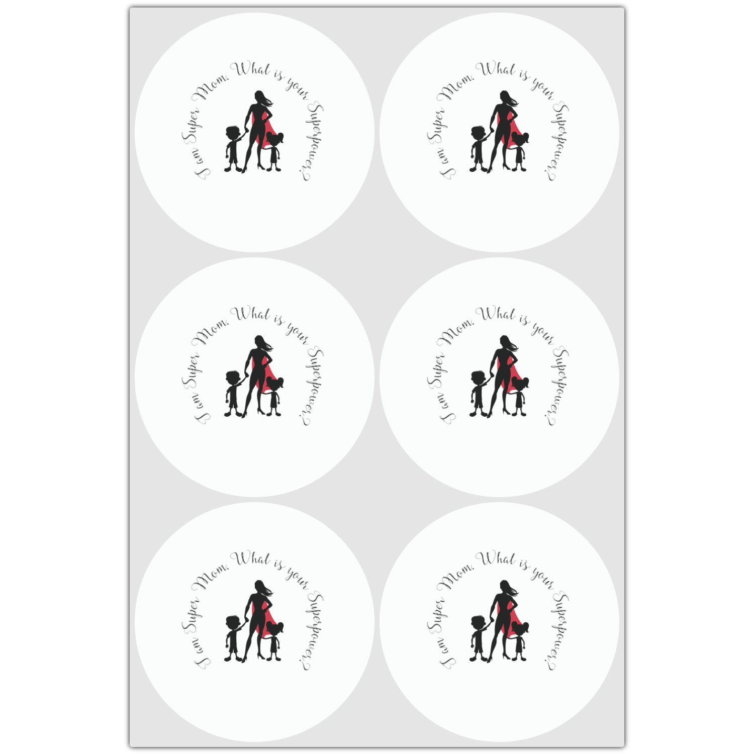 Our Super Mom design is perfect for your Mother's Day Gift. Moms today are truly super heroes with all that they have to balance. Our adorable design depicts a super hero mom / woman holding hands with a little boy and a little girl. Our super hero mom is wearing a red cape. We used a blush colored starburst with stars to highlight our beautiful mother. We personalized with our new circular text and used the words "I am a Super Mom. What is your Superpower?". We use a scripty girly font. We think the design looks outstanding!