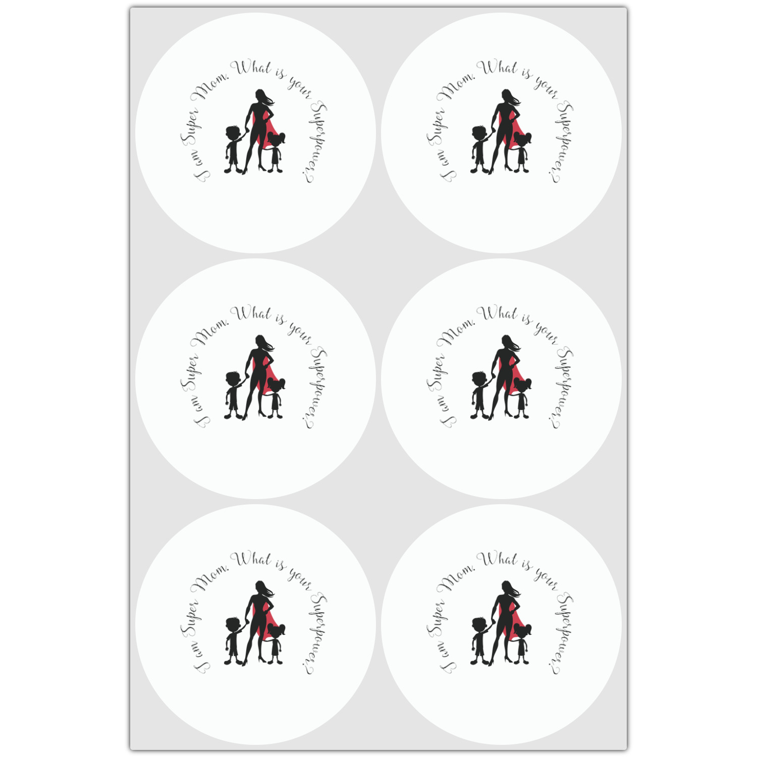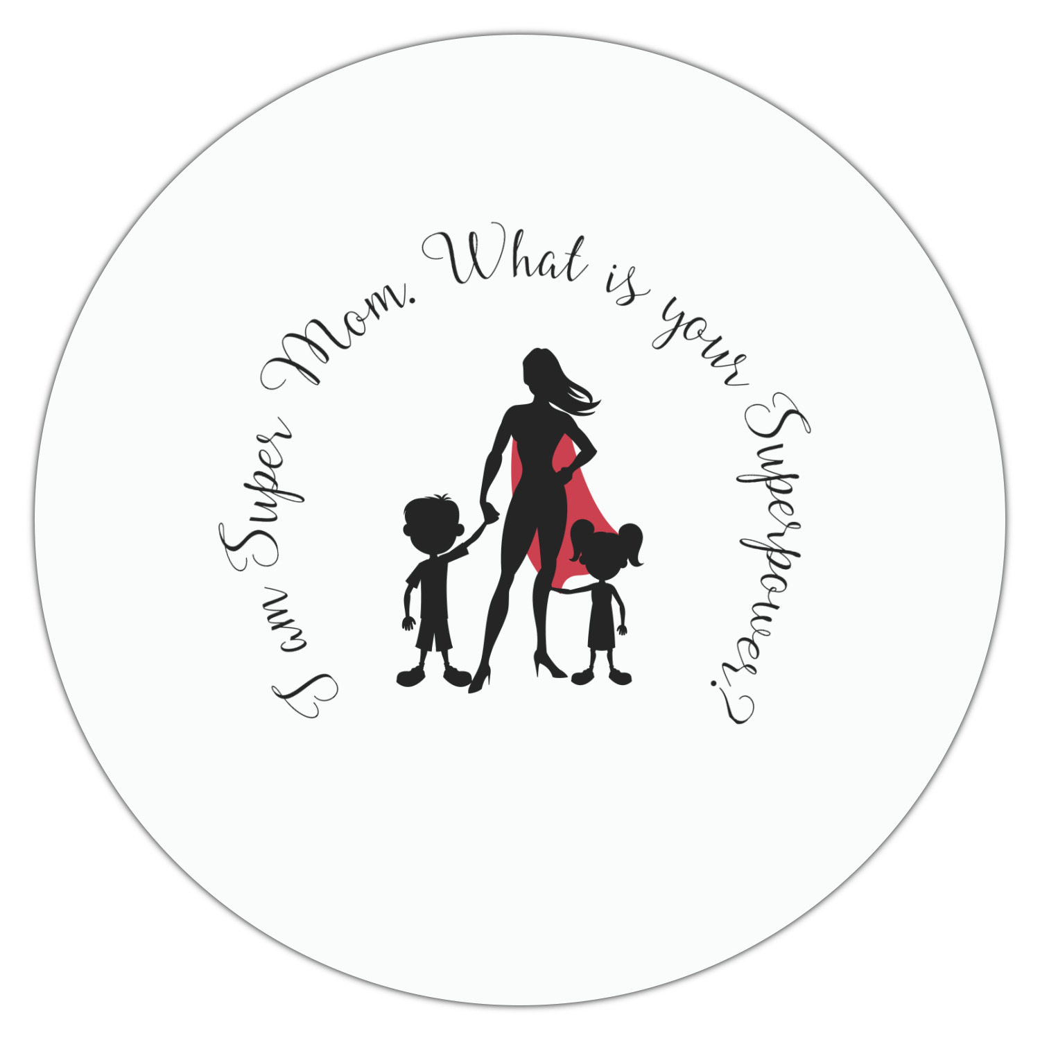 Our Super Mom design is perfect for your Mother's Day Gift. Moms today are truly super heroes with all that they have to balance. Our adorable design depicts a super hero mom / woman holding hands with a little boy and a little girl. Our super hero mom is wearing a red cape. We used a blush colored starburst with stars to highlight our beautiful mother. We personalized with our new circular text and used the words "I am a Super Mom. What is your Superpower?". We use a scripty girly font. We think the design looks outstanding!