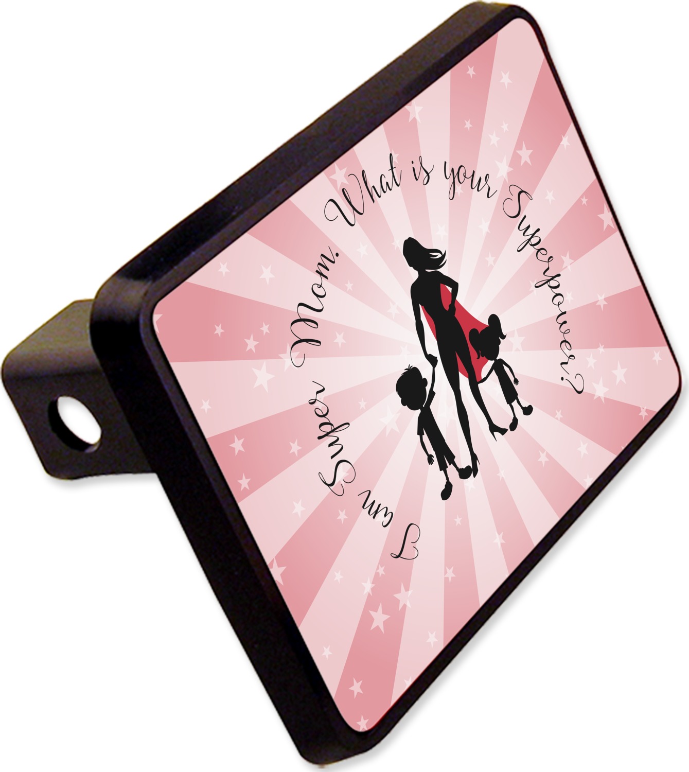 Our receiver hitch covers are molded, durable, and available in a size that fits 2in., square receiver holes. This model is best suited for a Class 3 or Class 4 hitch, but please consult our hitch sizing guide to make an informed purchase. We print your design on the surface of the rectangular cover, while the rest of the cover is a sleek, black color. The design's vibrancy will last up to 2 years in harsh sunlight. Designed for easy attachment, the cover slides easily into your trailer hitch and can be secured using a pin (not included).