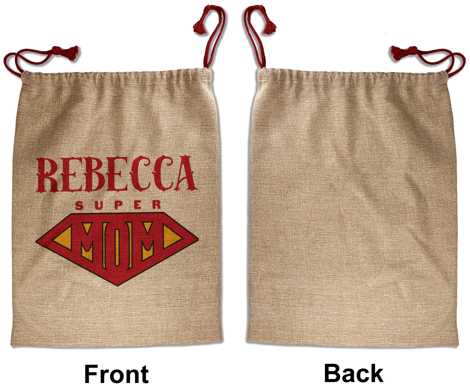 Our Santa sacks print your design on the burlap material giving it a nice rustic, natural design! The burlap material is also machine washable and wrinkle-free, so feel free to fold and store out Santa bags until the next time you need it! Secure your gifts with our red accent drawstring ties at the top of the sack so the mystery of your gift stays a surprise until Christmas day. We offer two types of printing- one side partial print or double-sided partial printing. Design and personalize your own Santa sack in time for the holidays!