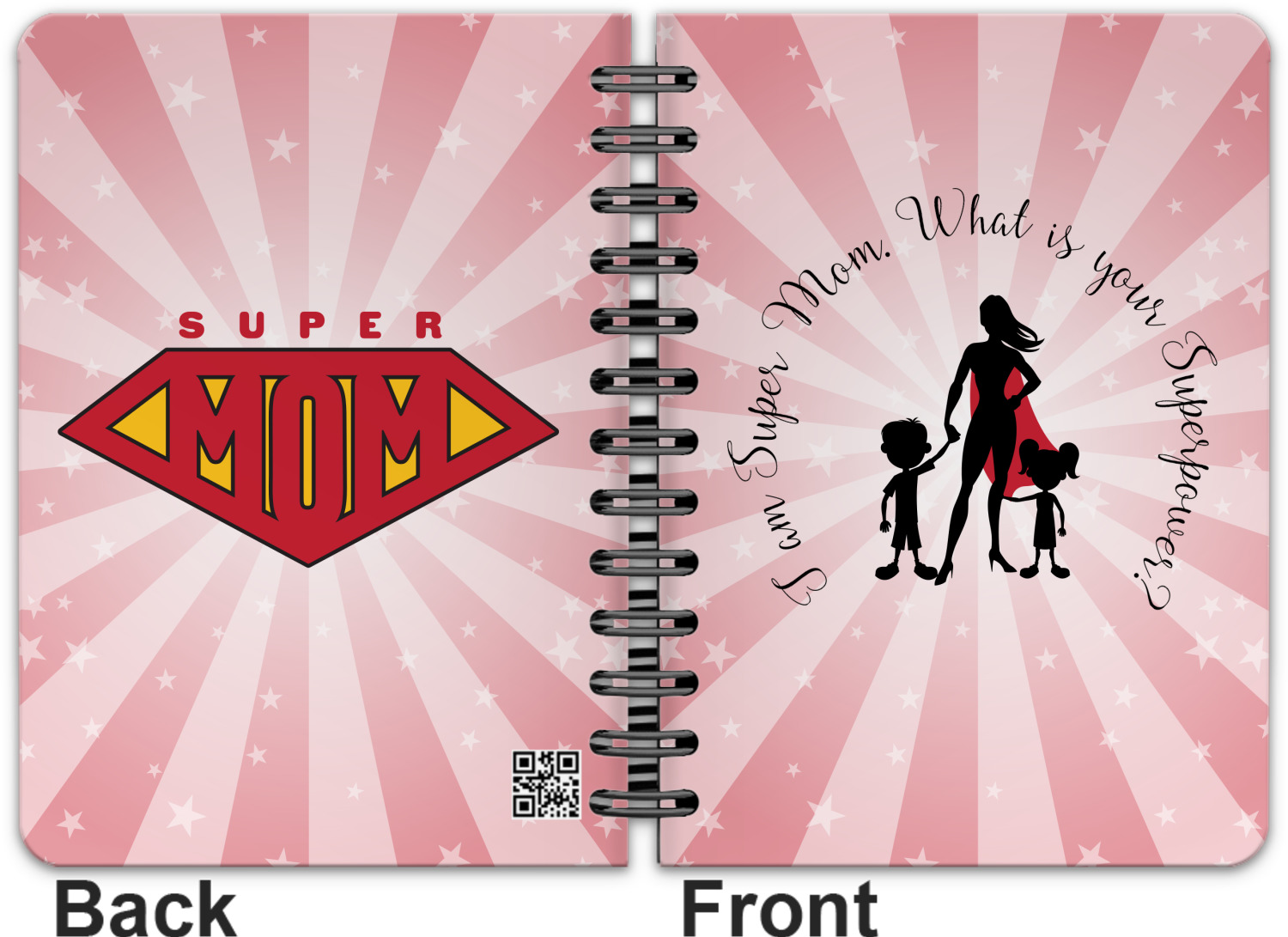 This spiral notebook includes 75 sheets of thick, ruled paper. The front and back of this custom notebook is made of a robust, laminate, plastic covering. We print your personalization on these two panels, underneath a glossy finish, which emphasizes the colors of your design. The two panels and the sheets of paper are held together by a sturdy, black coil. The paper within your bound notebook is perforated for easy, clean tearing.
