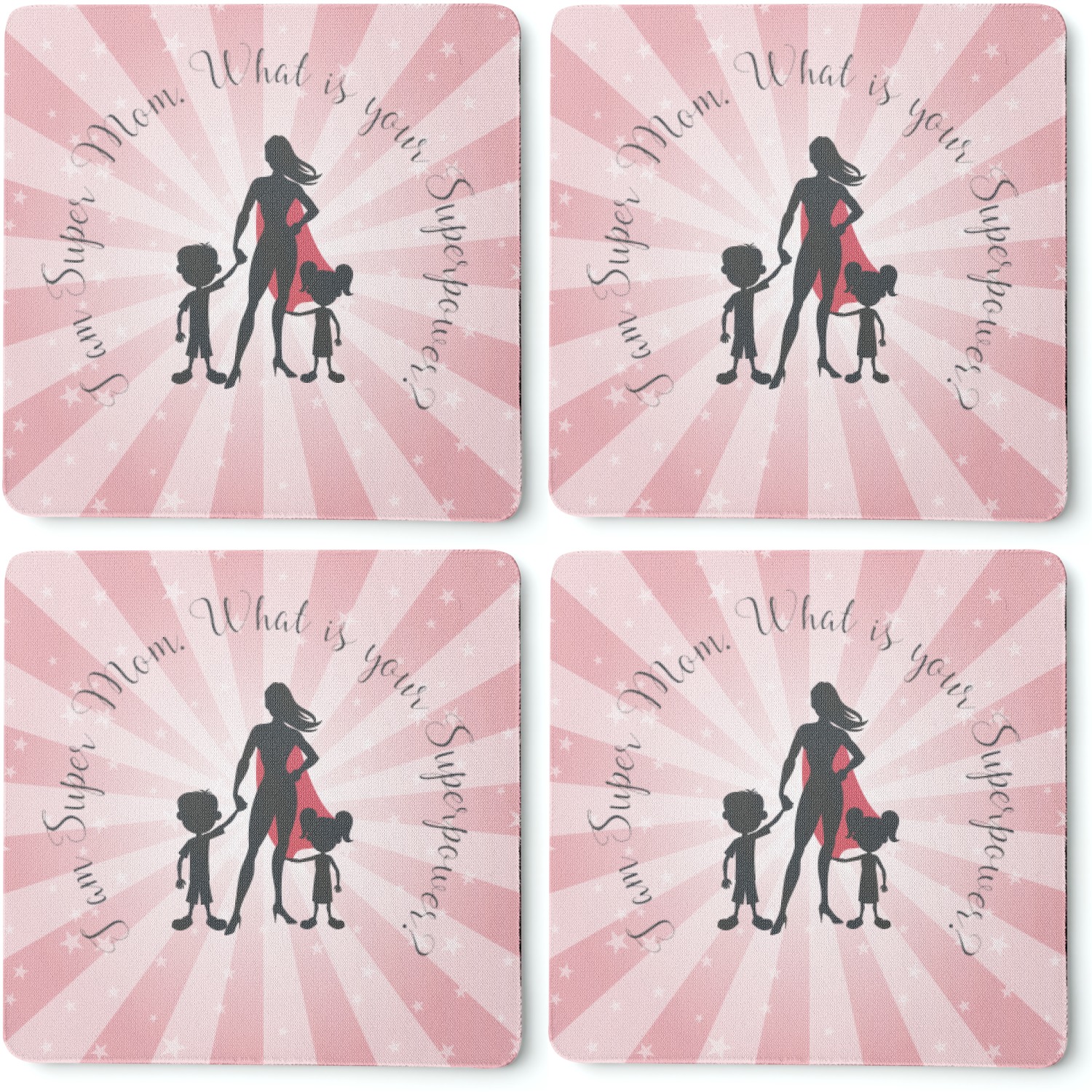These drink coasters have a smooth, polyester top and a textured, rubber backing on its bottom. The non-slip rubber backing underneath works to keep any spills at bay. At 4 by 4 by 0.25 inches thick, these custom coasters are a suitable size for most drinkware. Your personalization is displayed atop the face of the cup coaster. We sell these rubber coasters in two different shapes: square and round. You can buy each shape as singulars or as a set of 4.