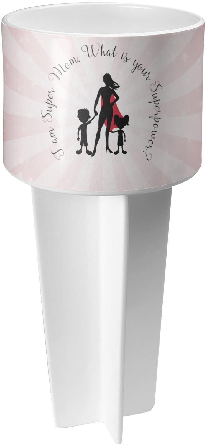This cup holder has a large stake at its bottom that anchors it to the sand or ground below, while the cup holder rests above the stake. The entire drink holder is made of durable plastic and displays your customization around the cup holder portion. We sell these personalized beach spikers in two different colors: black and white.