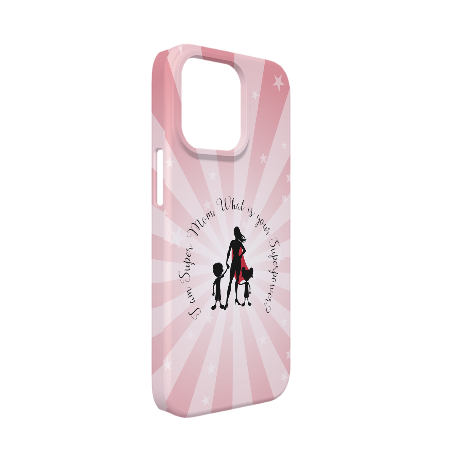 Our Super Mom design is perfect for your Mother's Day Gift. Moms today are truly super heroes with all that they have to balance. Our adorable design depicts a super hero mom / woman holding hands with a little boy and a little girl. Our super hero mom is wearing a red cape. We used a blush colored starburst with stars to highlight our beautiful mother. We personalized with our new circular text and used the words "I am a Super Mom. What is your Superpower?". We use a scripty girly font. We think the design looks outstanding!