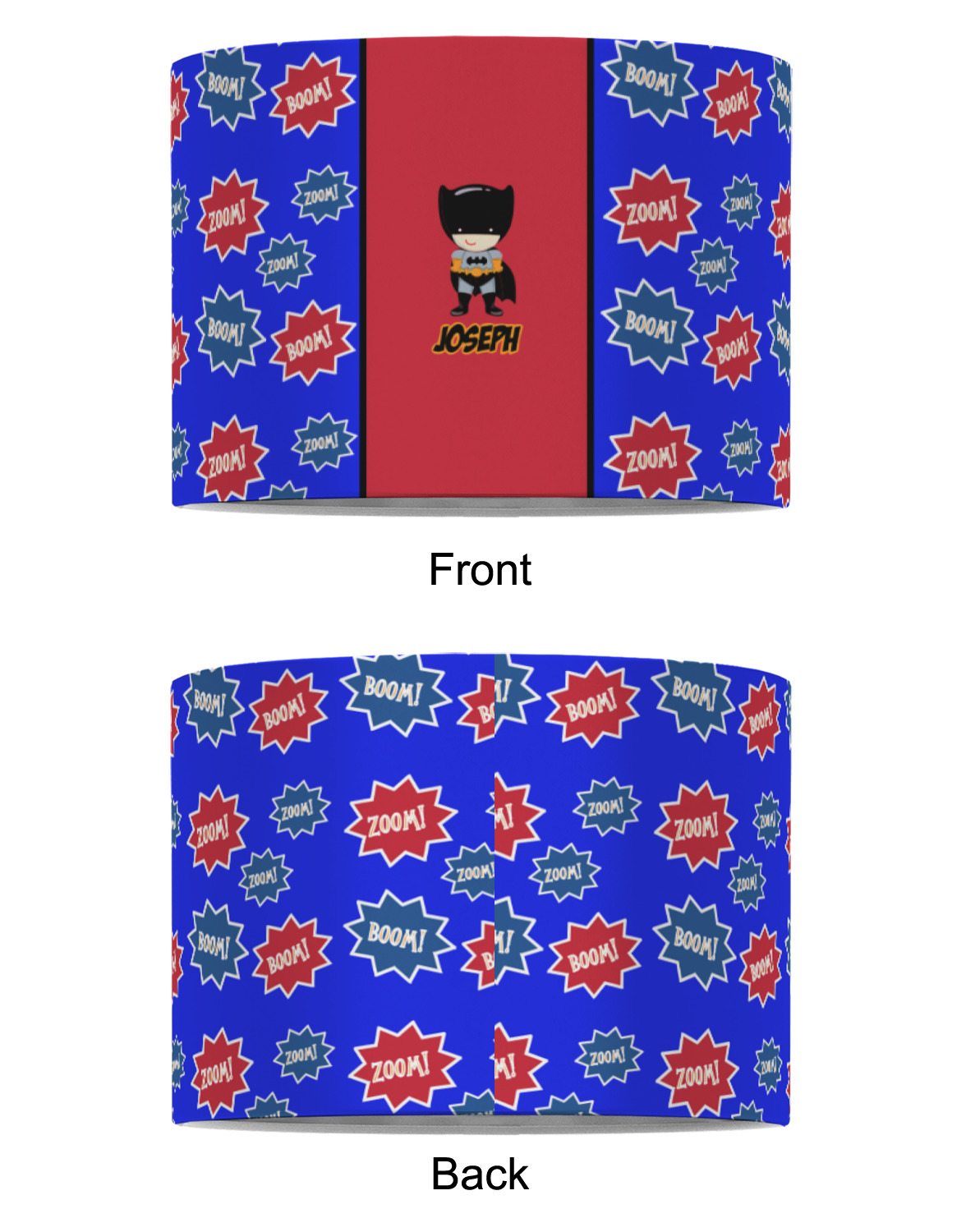 Our customized lamp shades also come in 3 different sizes: 8", 12" and 16", measuring at 8" in diameter by 6" tall, 12" in diameter by 8" tall, and 16" in diameter by 10" tall, respectively.