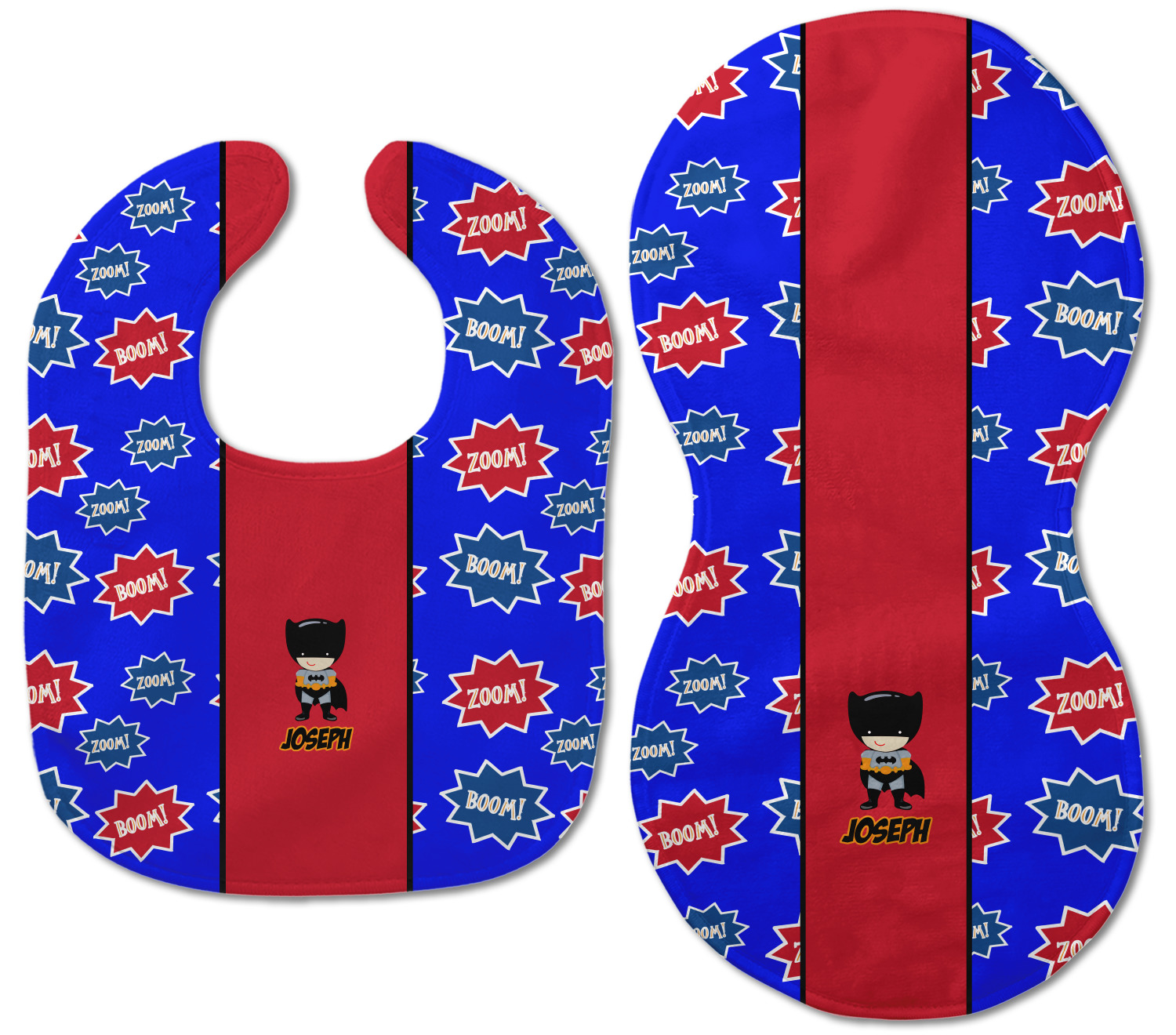 Both our baby bib and burp pad are made up of soft, microfiber velour with a cotton backing. The comfortable and plush material of our bib and burp set is perfect for both baby and parent. We print your design on the microfiber velour face fabric with baby safe ink on your customizable bib and burp cloth to ensure safety for the little one! Our drool bib also comes with a Velcro clasp for safe and easy wear while the burp cloth is a unique peanut shape that perfectly hugs over the shoulder.