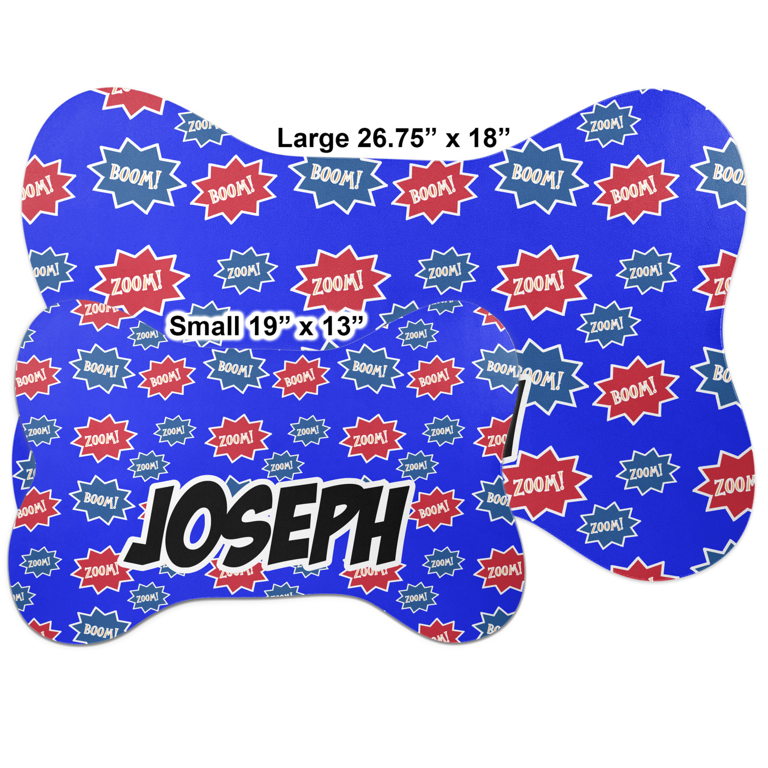 The bone-shaped dog bowl mat is the perfect way to add a touch of personality to your dog's eating area! Dogs make inevitable messes, especially when they eat and drink. Save the integrity of your floors and the time spent cleaning them by purchasing a personalized mat that catches spills!