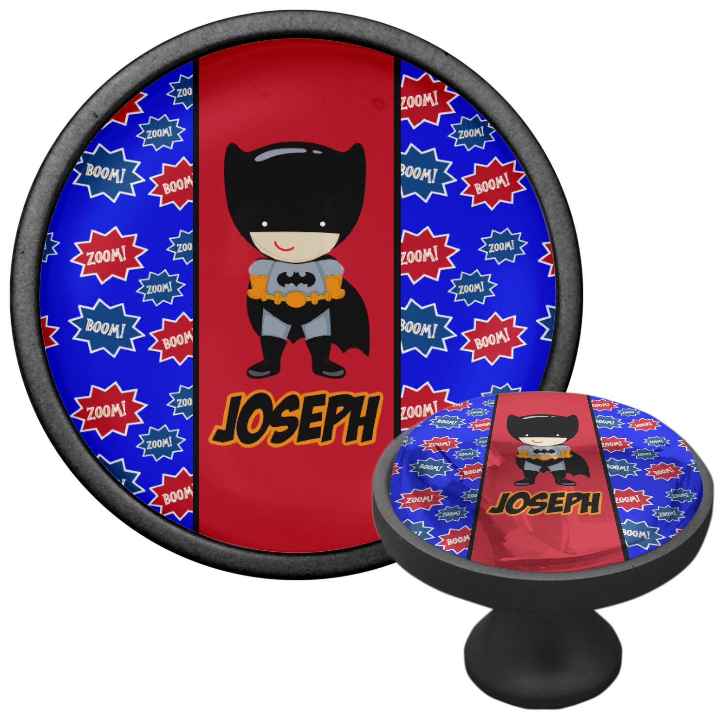 We sell these cabinet pulls in two different colors to better match your room's color scheme. We offer an oil-rubbed bronze base that is black in color, and a satin nickel option, which has a silver color. Your design is displayed across a high gloss vinyl insert that is placed on top of these cabinet handles. We then place a 1 inch thick glass cabochon atop the design, which seals the cabinet knob and makes the colors of your customization stand out. These custom cabinet knobs are approximately 1.3 inches in diameter. Your purchase includes a 1 inch screw that can be used to mount the knob to any cabinet in your home.
