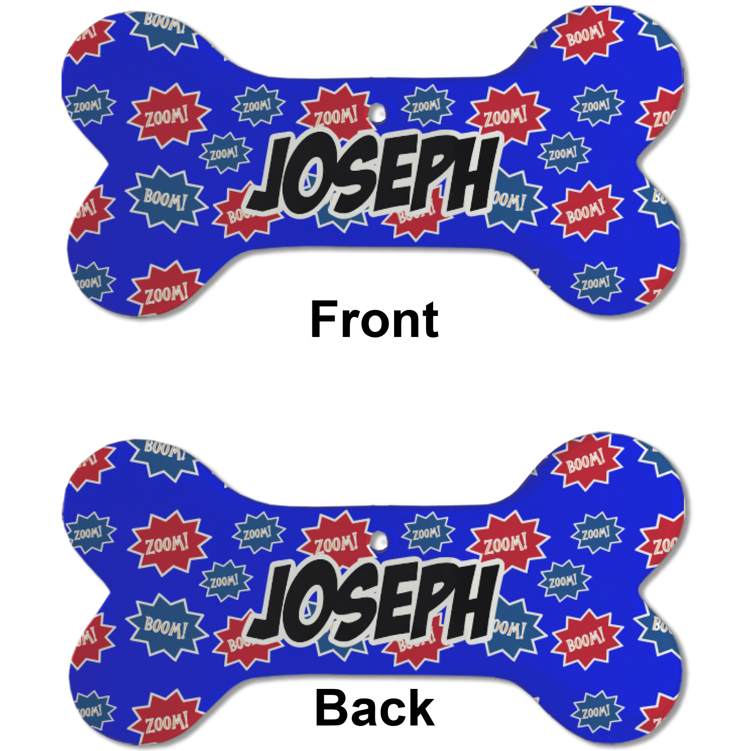 Our dog Christmas ornaments are a ceramic material with a bone-shaped structure hung horizontally. We offer two printing styles to personalize your furry friend's ornament! Choose a one-sided printing, perfect for wall decor, memorial accessory, or doghouse nameplate! Create a double-sided ornament perfect for adorning the Christmas tree. Each dog bone ornament is approximately 4.75" x 2.25" and is printed here in the USA.