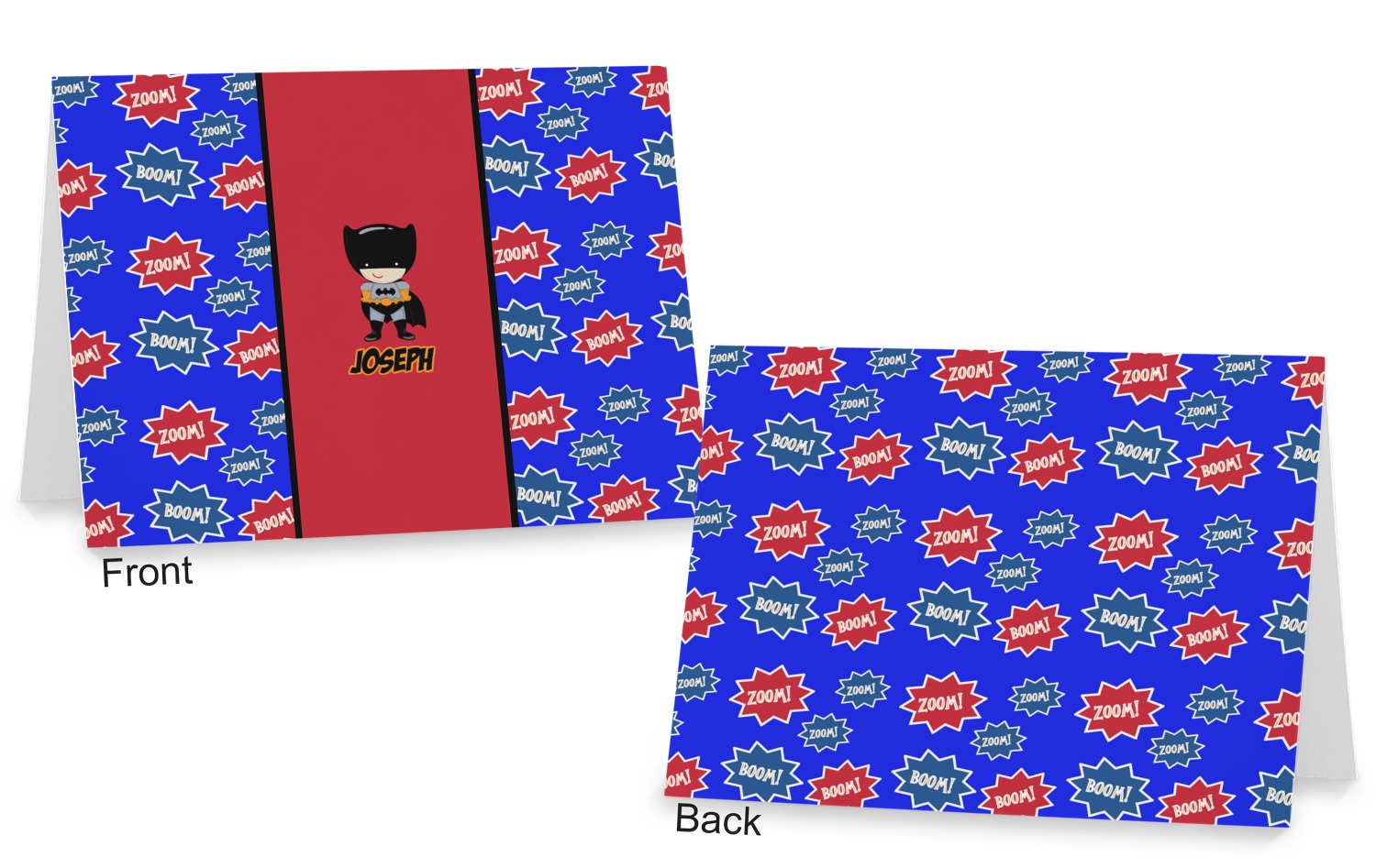 Our custom folded note cards are printed on premium 100lb. card stock and comes with white envelopes. The note card measure 5.5 by 4.25 inches and are blank on the inside for your handwritten message.