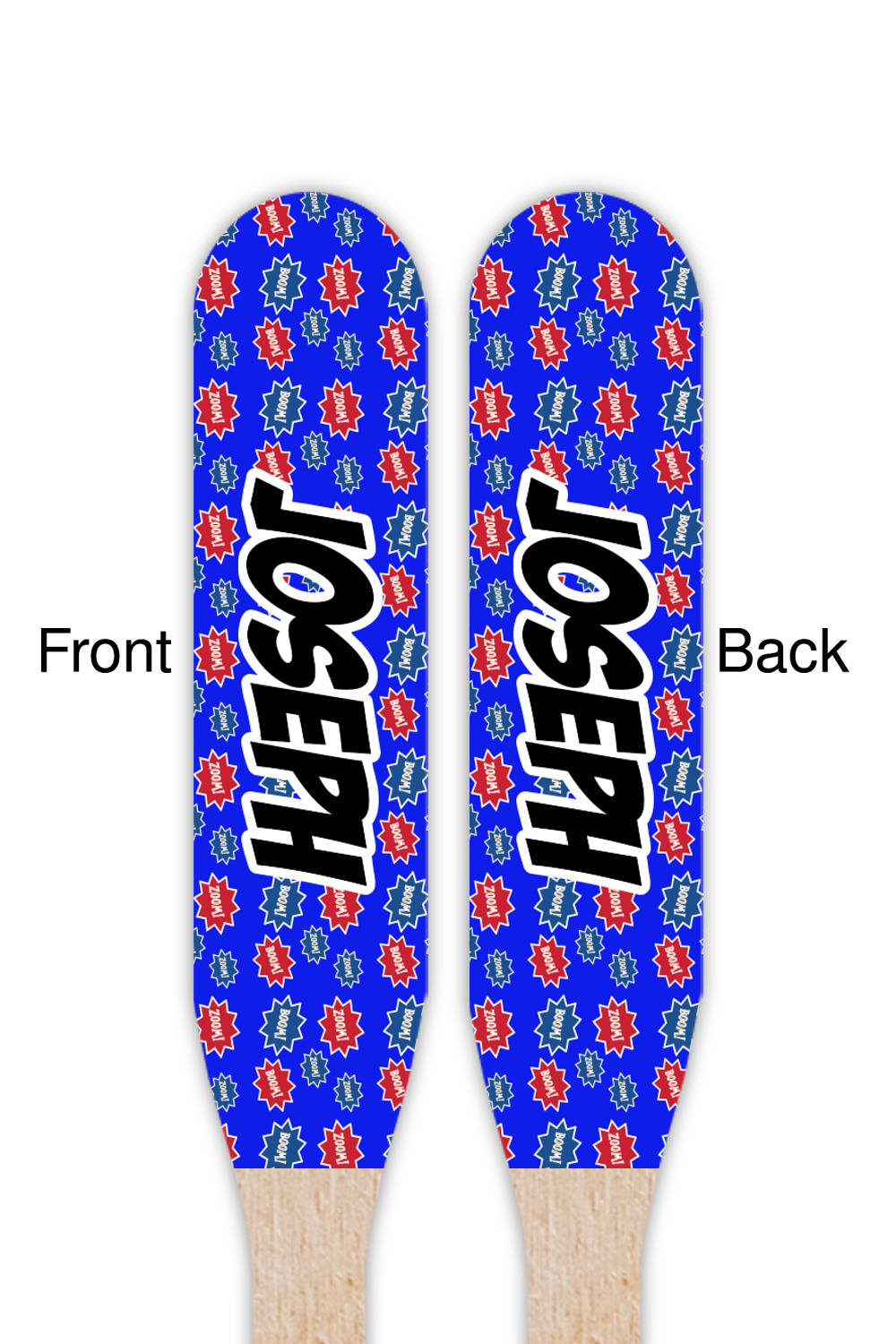 Our paddle style food & drink picks are available in 2 print styles - single sided and double sided.