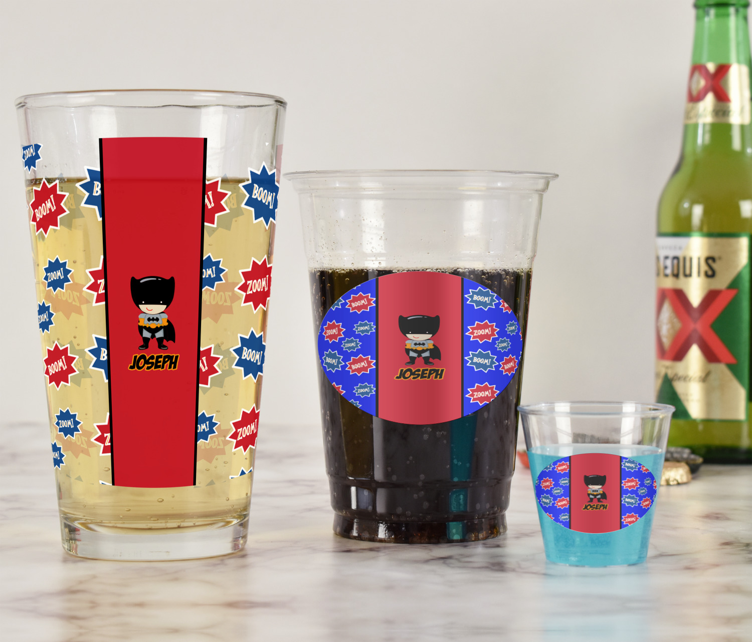 Your little one can pick his favorite superhero to add to the label, and for that special touch, the personalization of his choice. Boys and girls everywhere will love this design!