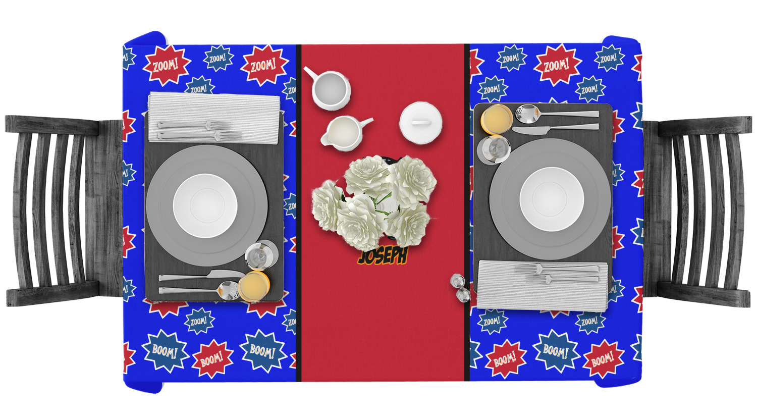 Whether you want to create a formal or informal dining room ambiance our personalized tablecloths will do just the trick!! Pull them out for the holidays, dinner parties, or use them everyday. We have a plethora of designs that cater to kids, teens, and adults; all tastes can be satisfied!!