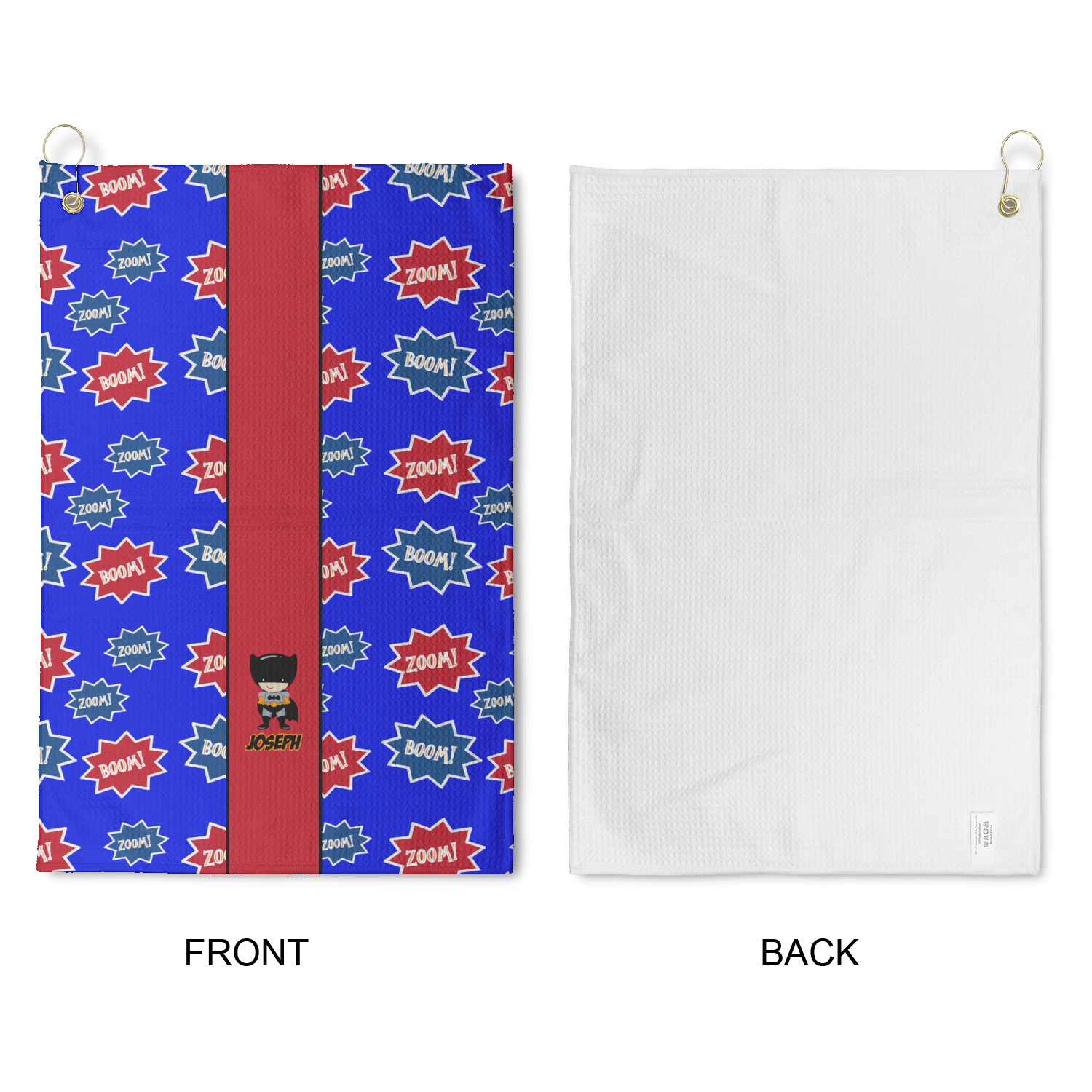 Trying to choose which golf towel is right for you? Our standard golf bag towel (one size - 13" x 18") is a terry loop style towel with a partial print that is great for normal, everyday use. If you are looking for a poly-cotton blend full print towel look at our standard full print golf towel - available in 2 sizes - small (11" x 18") and large (15" x 25"). If you prefer the look and feel of a soft microfiber towel our microfiber golf towels are a great option and allow you to polish your club and ball surfaces to a nice sheen. The microfiber golf towels are also available in 2 sizes - small (11" x 18") and large (15" x 25"). Lastly the waffle weave towel (available in a single size - 16" x 24") is a fantastic option to give you some texture on your towel to allow for more scrubbing and cleaning when playing in rougher, wetter environments. All of these options are able to be washed with bleach to get them clean and will retain their bright colors.