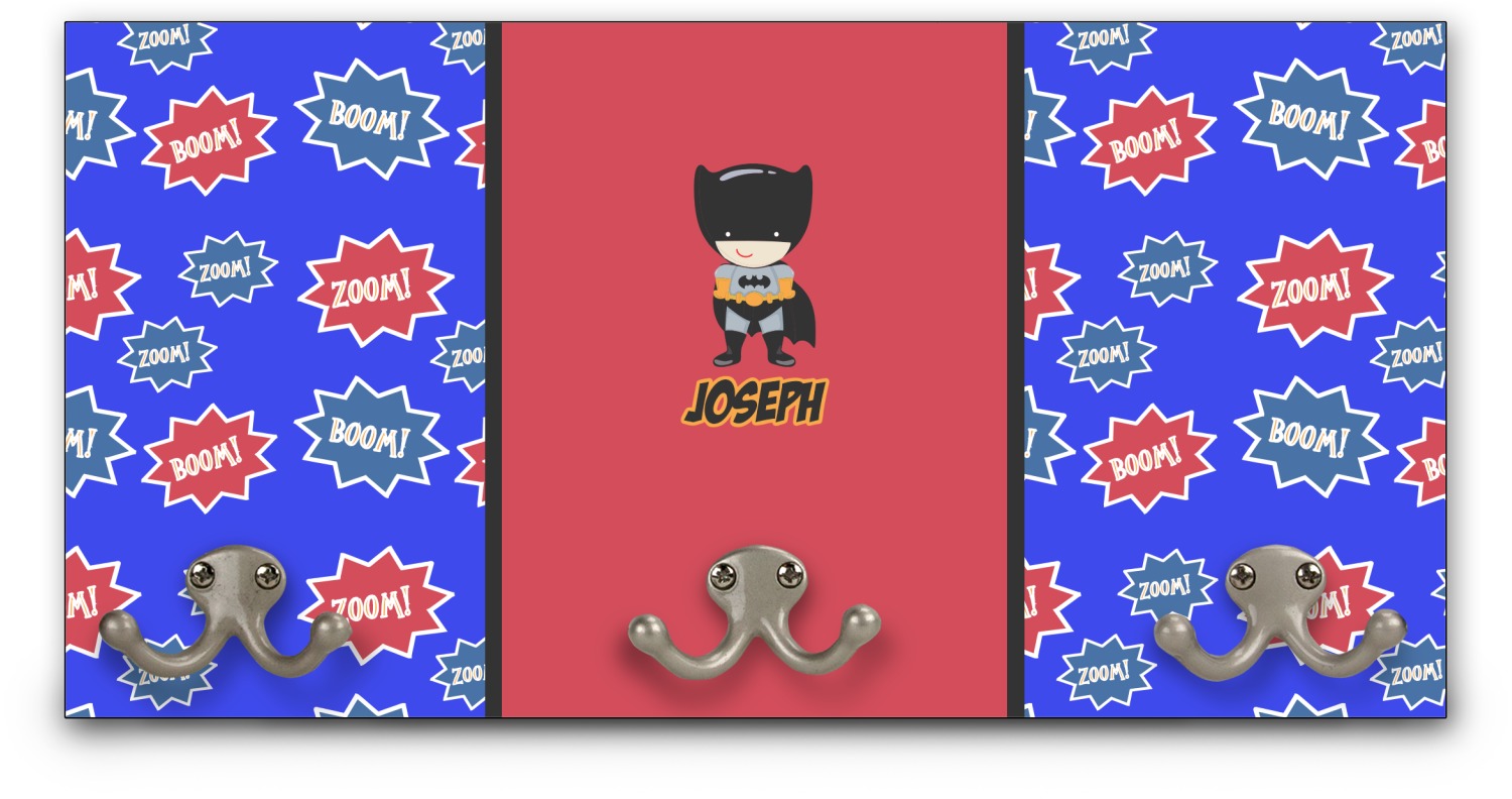 This coat rack is the perfect way to add some personality to your wall or entryway. The board is made of a strong maple that is approximately 16" x 8". The three 2-prong hooks are a sturdy metal that have three screws attaching them to the board. Your design is printed right onto the front of the board while the back and sides are a simple black.