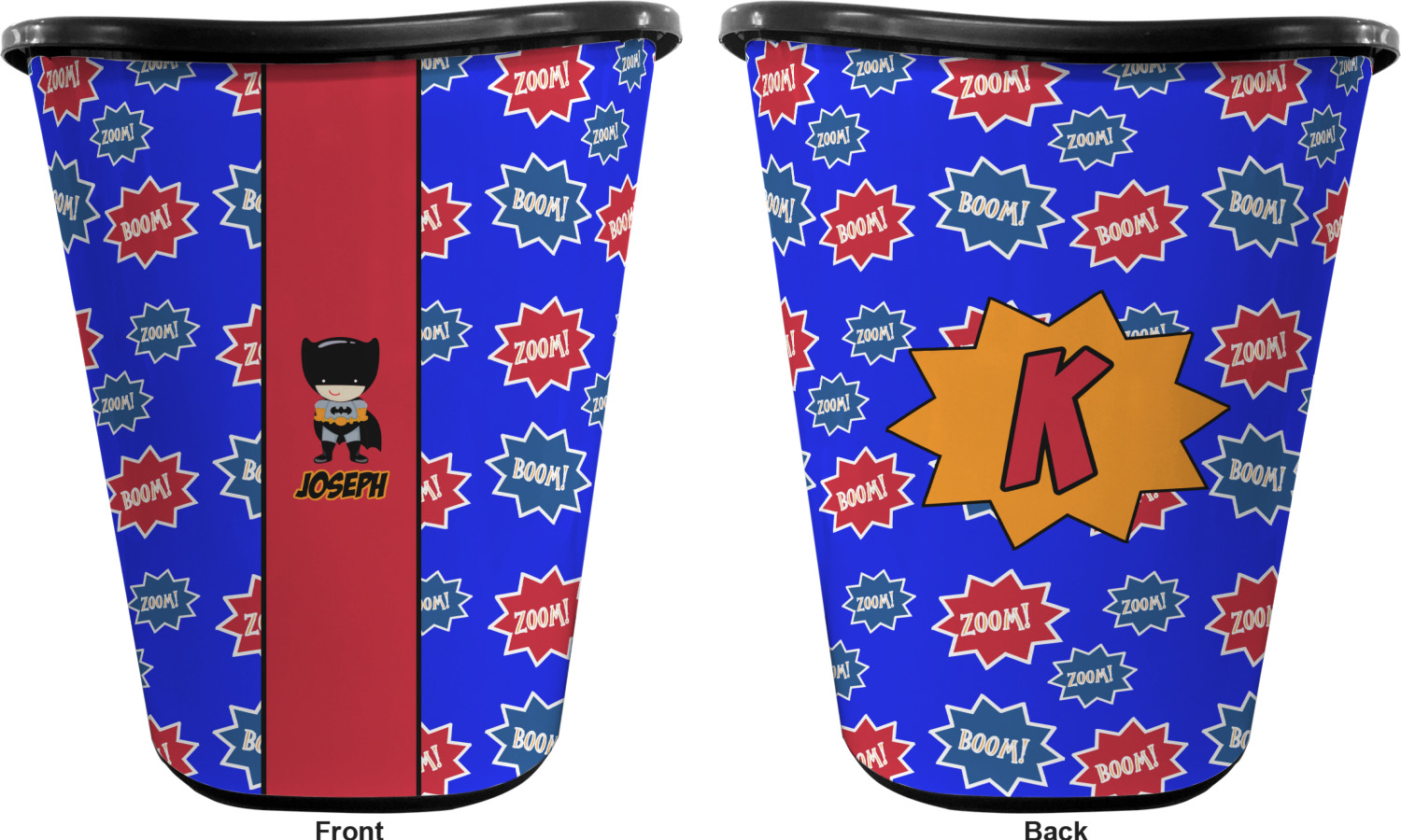 You can choose to purchase these decorative wastebaskets in either a white or a black color that will show on the base and the upper rim. Your customization is printed on a high-gloss, fine-quality vinyl adhesive, and you can choose to either have this adhesive applied to one side only or to both sides. As such, this plastic wastebasket can be single-sided or double-sided, depending on your creative vision. Your customization is printed using durable inks, making the design waterproof and resistant to fading over time.