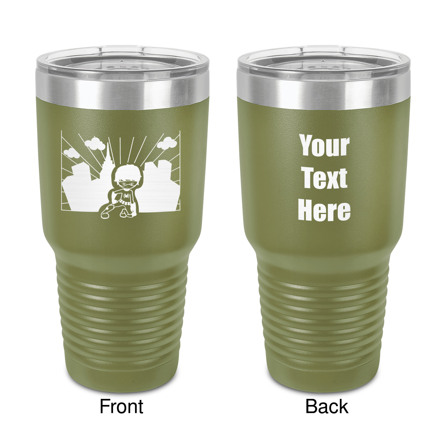 With our personalized 30 oz double wall stainless steel tumblers, you'll never have to settle for a plain, boring tumbler again! These tumblers will be a wonderful addition to your drinkware collection and will make those long commutes much brighter. Personalize one for yourself, or give these personalized tumblers as a gift to relatives, friends, or coworkers!