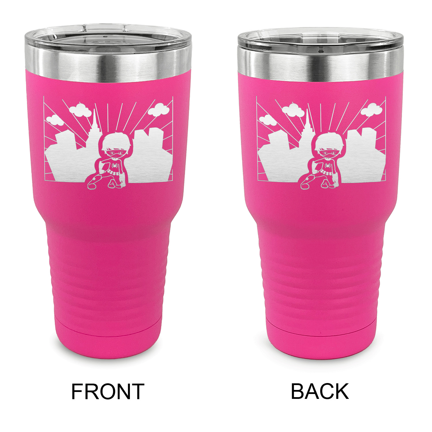 With the 5 colors - Black, Navy, Red, Pink and Coral, you are sure to find a cup to fit your personality. You can chose to engrave on the front or the front and back of the cup. Use our design studio to design your own cup and we laser engrave it for you.