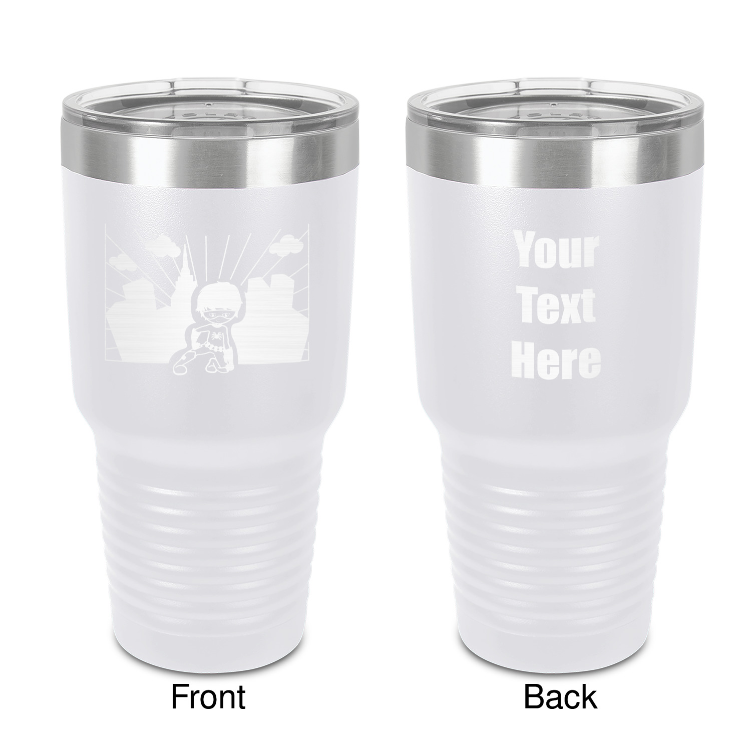 With our personalized 30 oz double wall stainless steel tumblers, you'll never have to settle for a plain, boring tumbler again! These tumblers will be a wonderful addition to your drinkware collection and will make those long commutes much brighter. Personalize one for yourself, or give these personalized tumblers as a gift to relatives, friends, or coworkers!