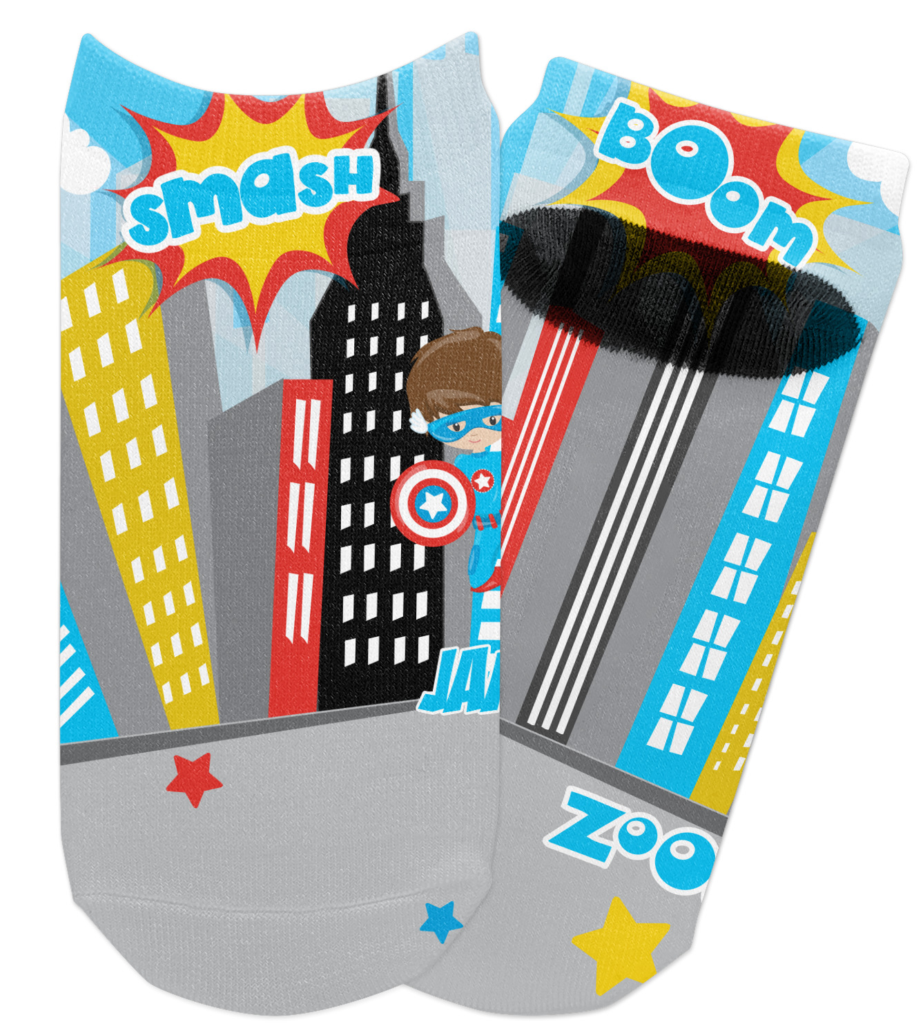 Go into the design center to get started the designing fun! Pick a fun pattern and even add a graphic to go on top of your socks!