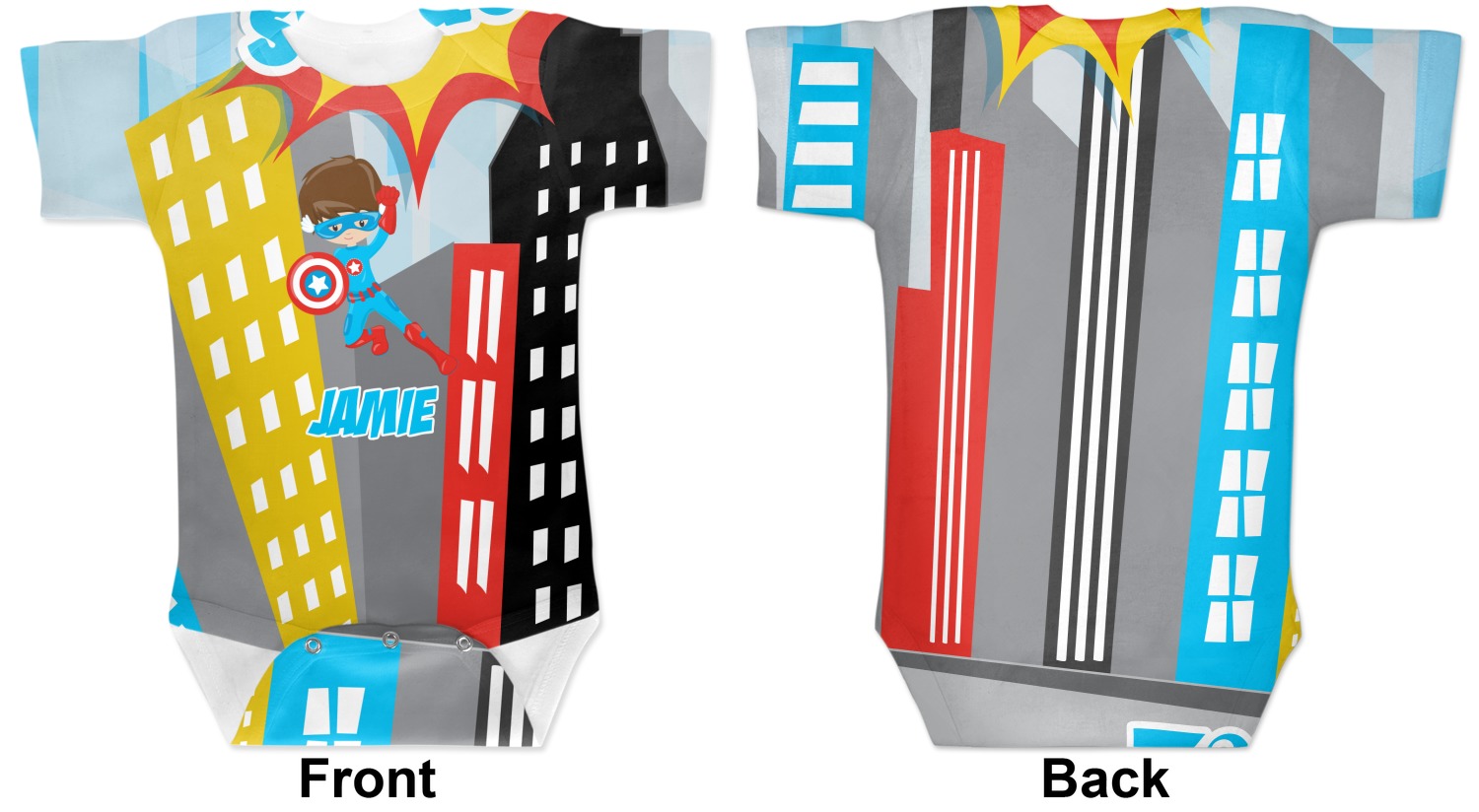 These cute baby bodysuits are made of stretchy, soft-to-the-touch polyester, making them very comfortable for your baby. These baby bodysuits also have snaps on the bottom to give easy access during changing times. Your personalization covers the entirety of this custom baby bodysuit, but the interior is white in color. As these are unisex baby bodysuits, they will work perfectly as baby girl bodysuits and baby boy bodysuits!