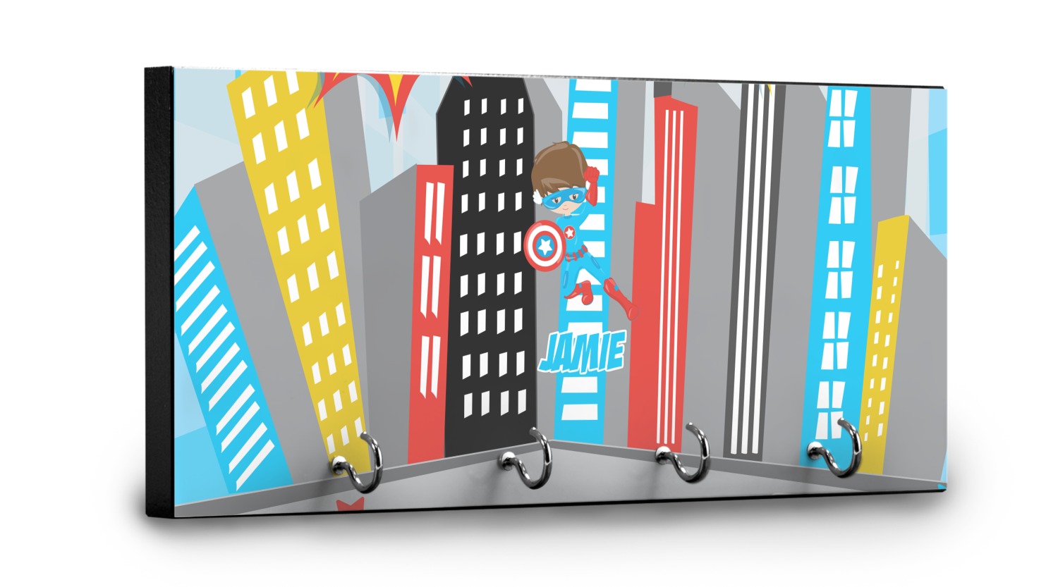 This 11" x 5" key hanger is made of sturdy wood and has four metal hooks lining the bottom. This is the perfect size for a family with several drivers. Not only can you hang keys on it though, but pet leashes and other small items. The board is black on the sides and back and is printed with the design of your choice on the front.