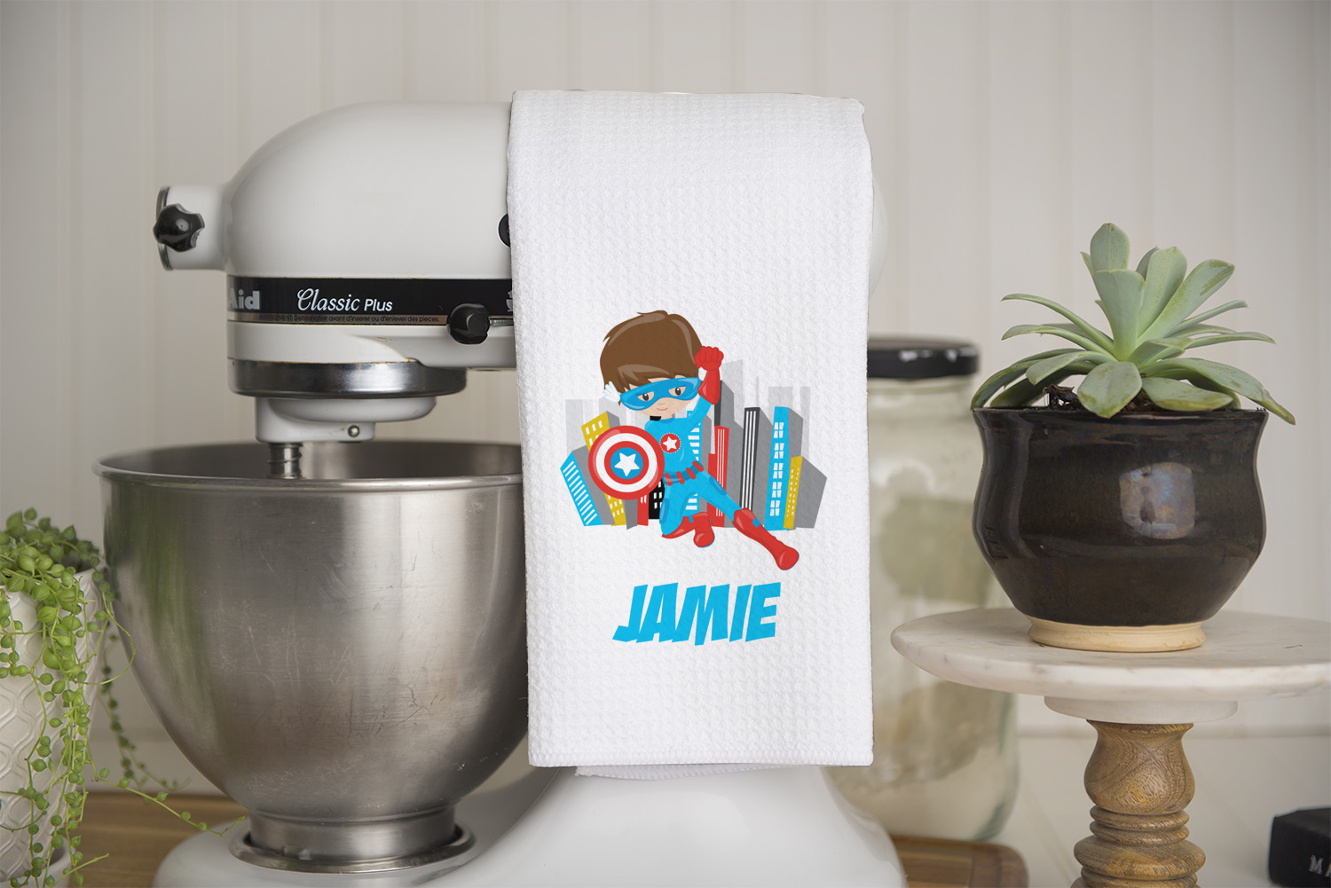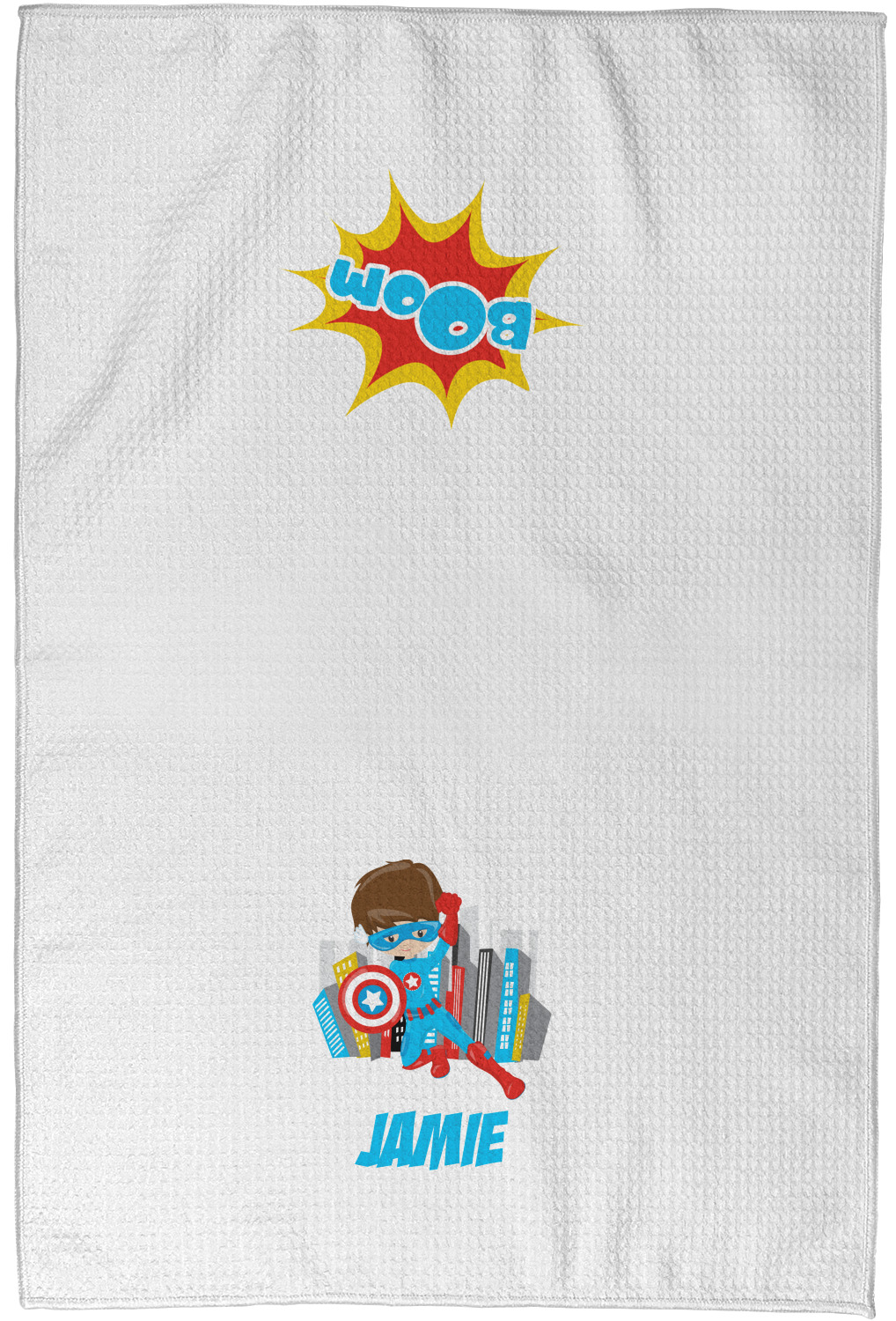 Each waffle weave kitchen towel is approximately 16 x 24 inches with your design printed on one side and the back is white.