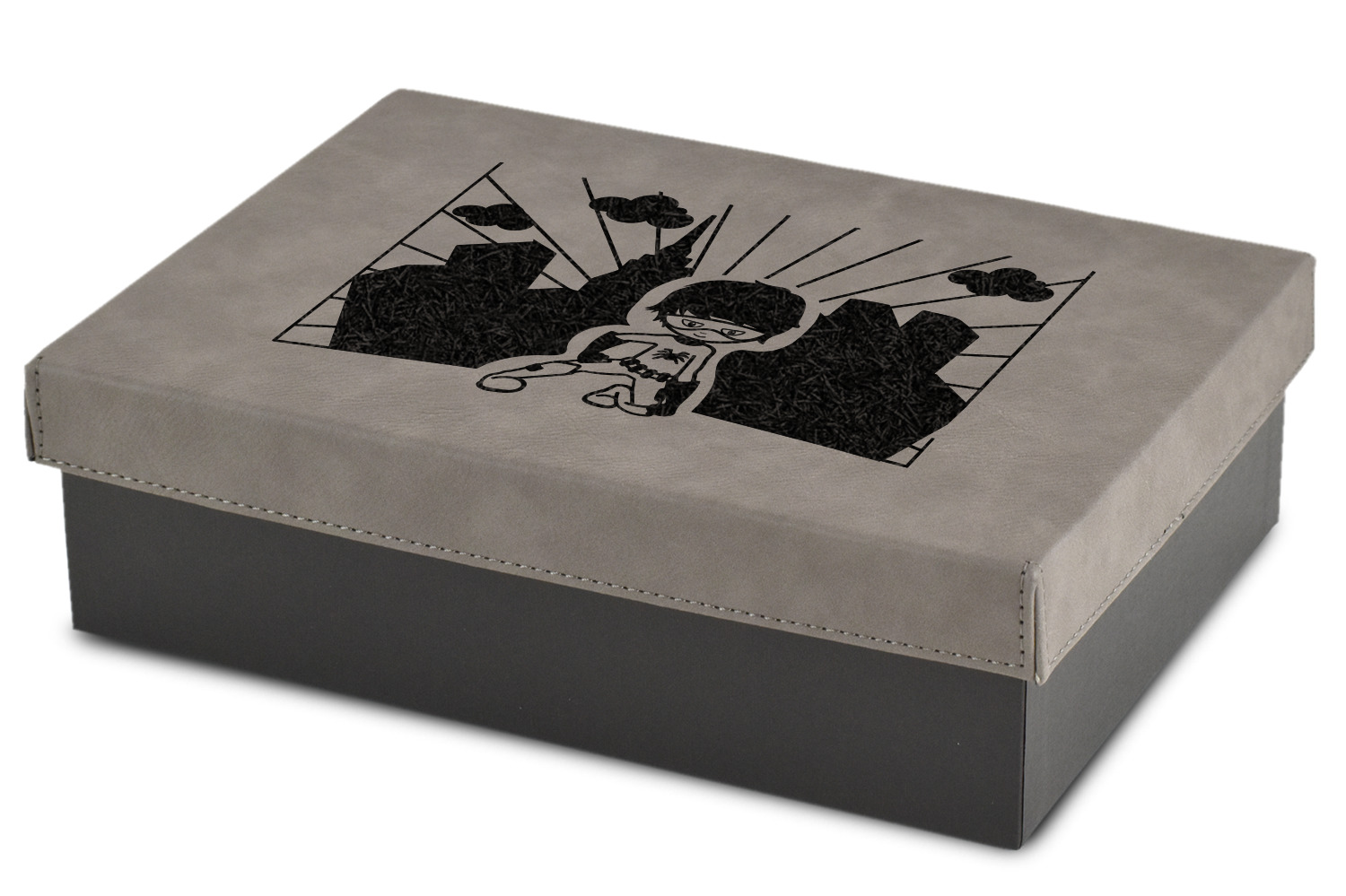 These gift boxes are available in 3 different sizes to accommodate various sized gifts. Available in gray as a neutral color for any occasion as well as to showcase your design boldly. Engraved with a laser this high quality paper board and faux leather gift box is unique and makes any gift stand out.