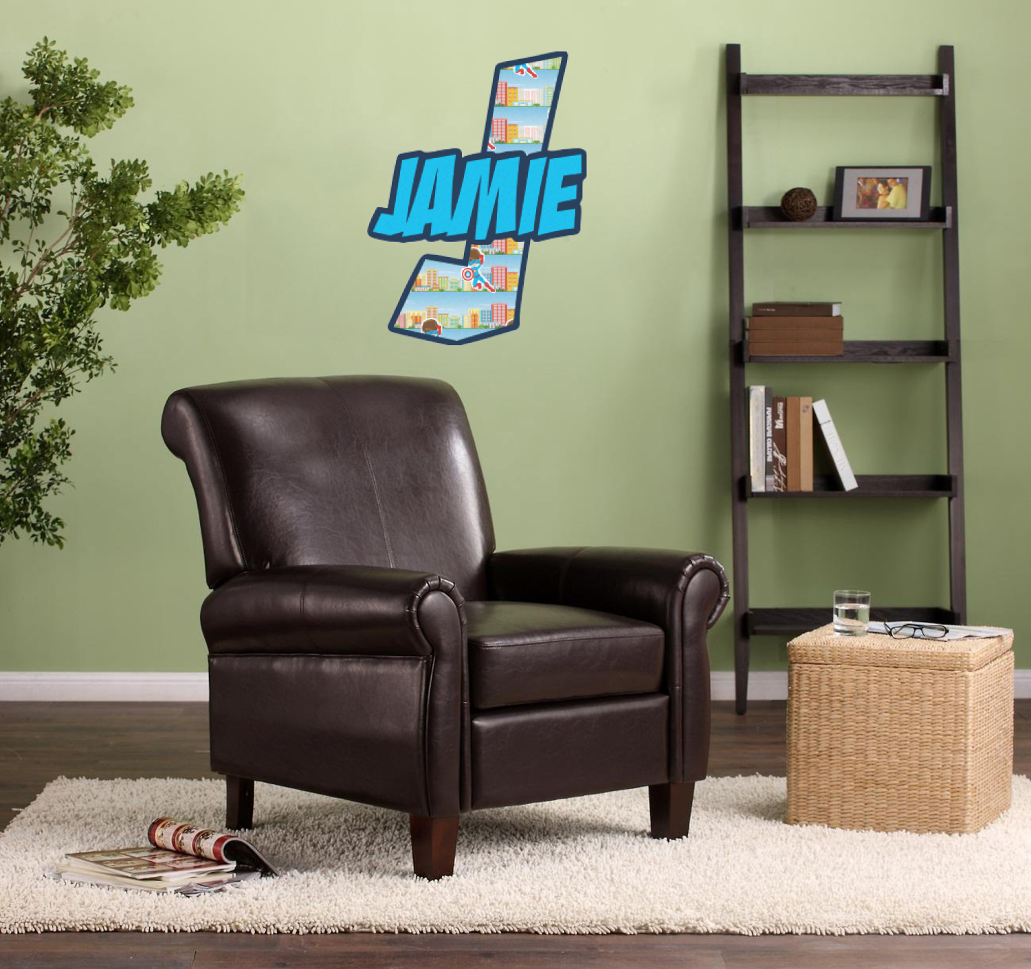 The name & initial wall graphics decals are printed and cut from white vinyl which has that removable adhesive; this type of adhesive is similar to that of a post it note, which makes it possible to apply to the desired surface easily, also making for a simple and clean removal.