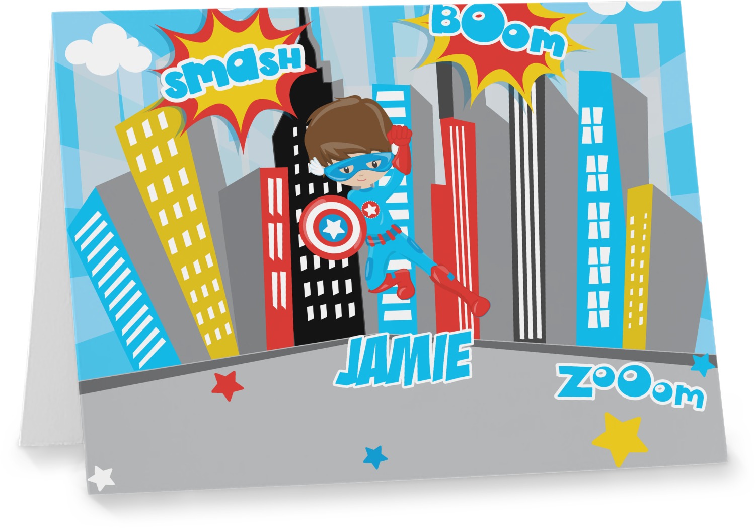Our custom folded note cards are printed on premium 100lb. card stock and comes with white envelopes. The note card measure 5.5 by 4.25 inches and are blank on the inside for your handwritten message.