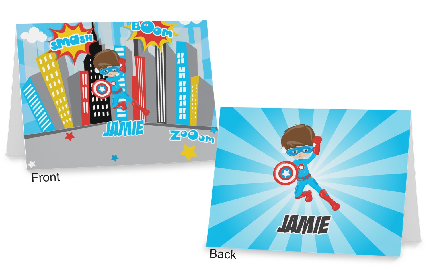 The cards can be customized horizontally or vertically. You can personalized the front AND the back to your exact specifications.
