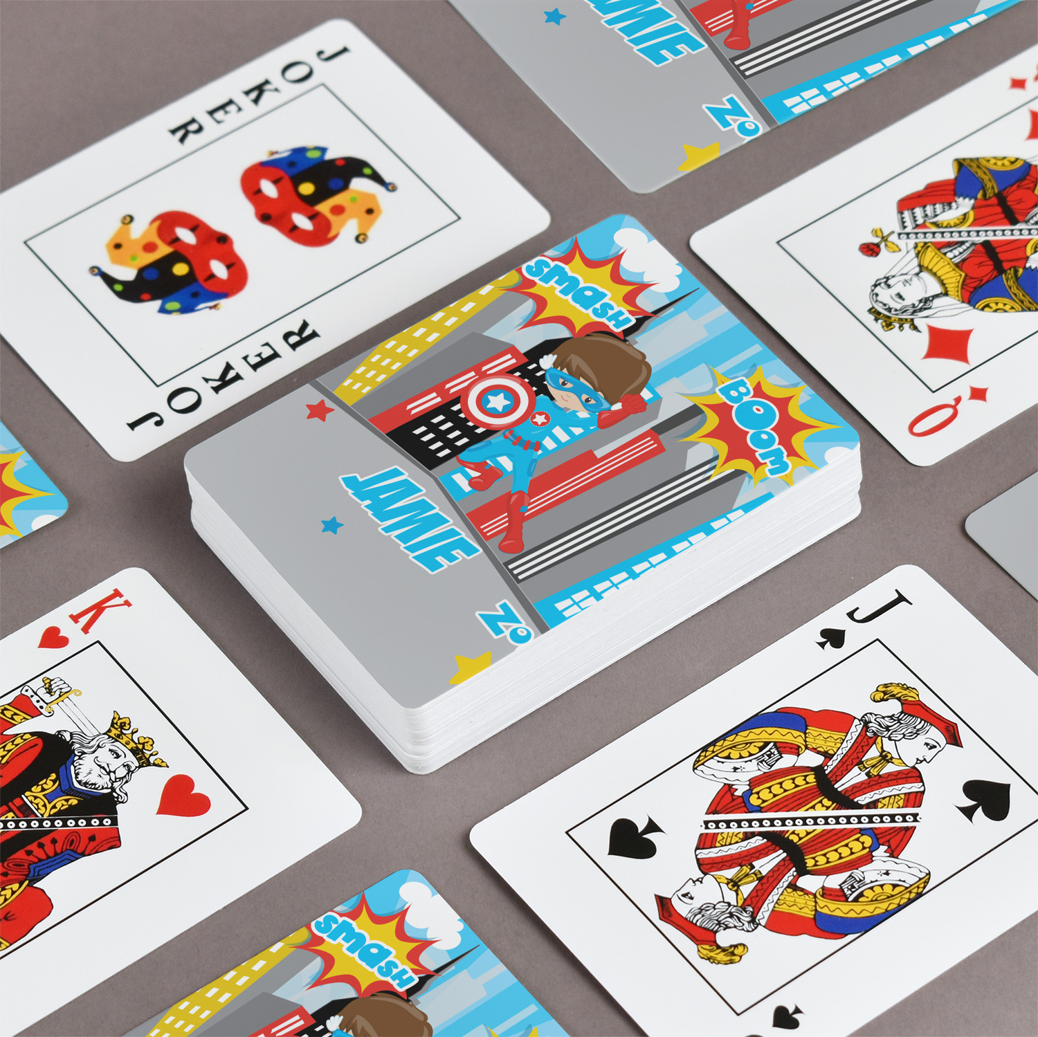 Our playing cards are perfect for family game nights or poker nights. A deck of customized playing cards ups the level of fun & entertainment to your game or poker nights. Imagine playing cards customized to match the theme of your game room, or game night, or that special event, or occasion with gambling tables!