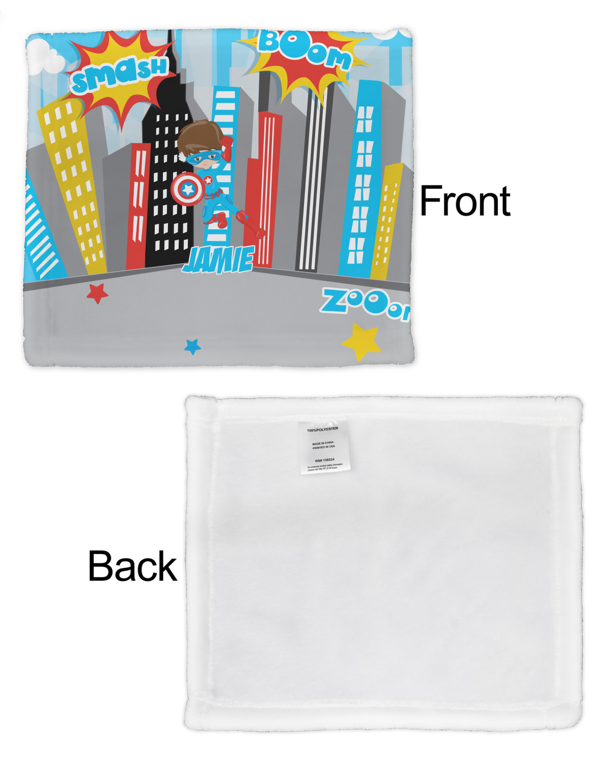 Crafted from an ultra soft fleece, these lovey blankets are the perfect, portable size to follow your child on any of his or her adventures. The plush texture also makes them ideal for naptime. Each personalized baby blanket measures at approximately 12 by 11 inches.