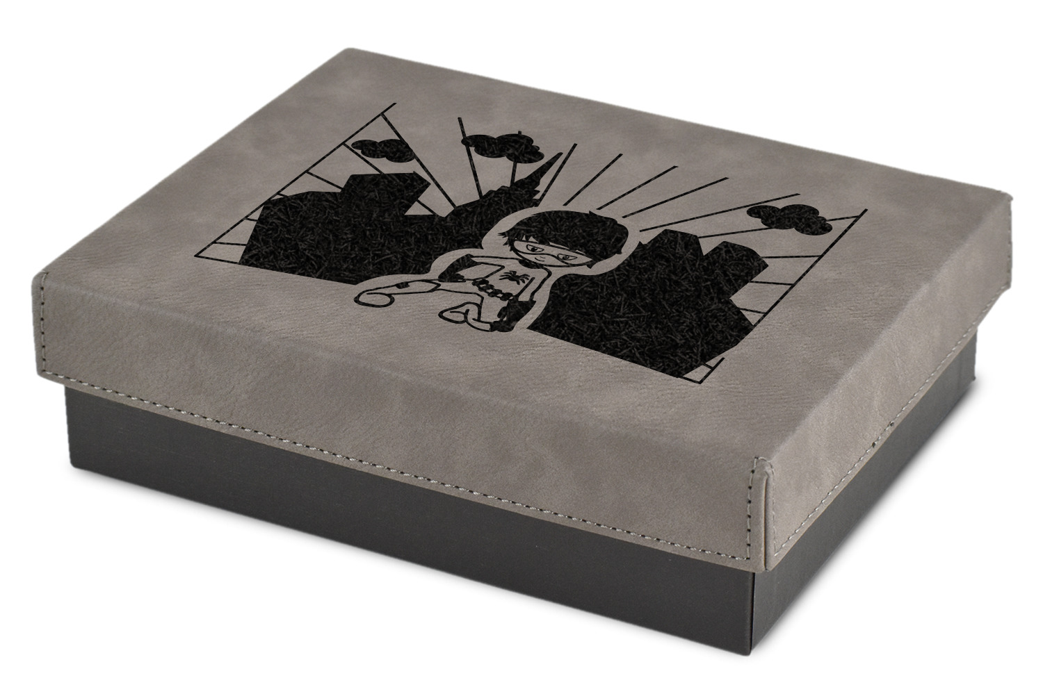 These gift boxes are available in 3 different sizes to accommodate various sized gifts. Available in gray as a neutral color for any occasion as well as to showcase your design boldly. Engraved with a laser this high quality paper board and faux leather gift box is unique and makes any gift stand out.