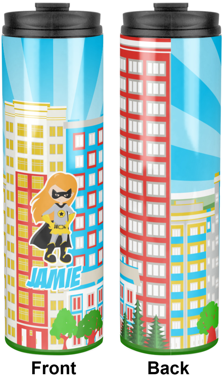 Sip your favorite drink on the go with your own custom stainless steel tumbler! Our slim cylinder shape is perfect for holding your drink in hand, in your purse, or in your backpack! This sleek and modern tumbler is a perfect gift for coffee and tea lovers keeping their drinks just the right temperature throughout the day! We offer two sizes, a 16 oz. or 20 oz., to personalize. Browse and customize or design or create your own with our online design studio!