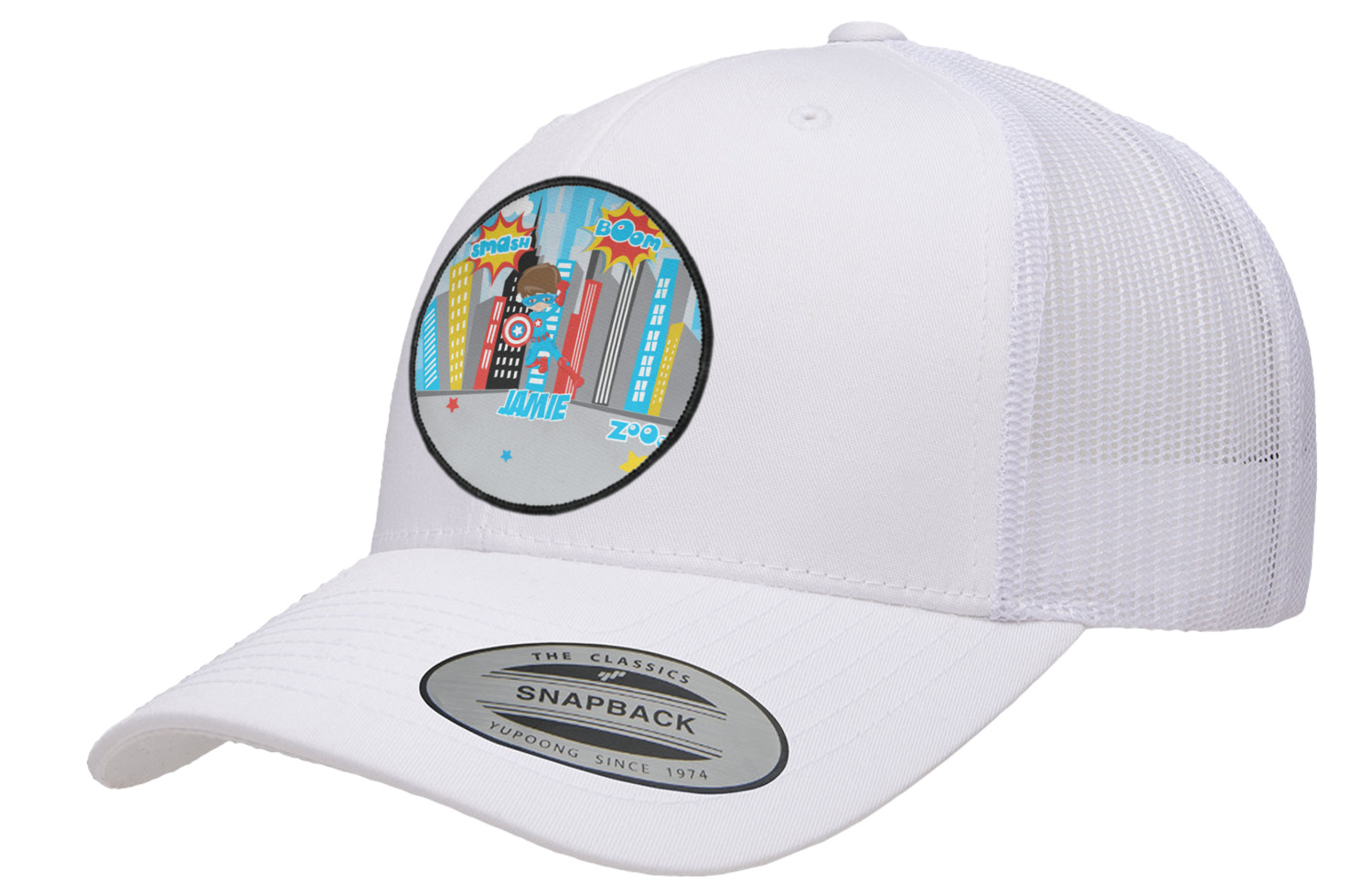 This elegant customizable white cap, made from a resilient blend of 65% polyester and 35% cotton, boasts a sophisticated 6-panel structured design. With a mid-profile crown, hard buckram backing, precise 8-row stitching on the visor, and an adjustable snapback closure, it marries durability with sleek style.