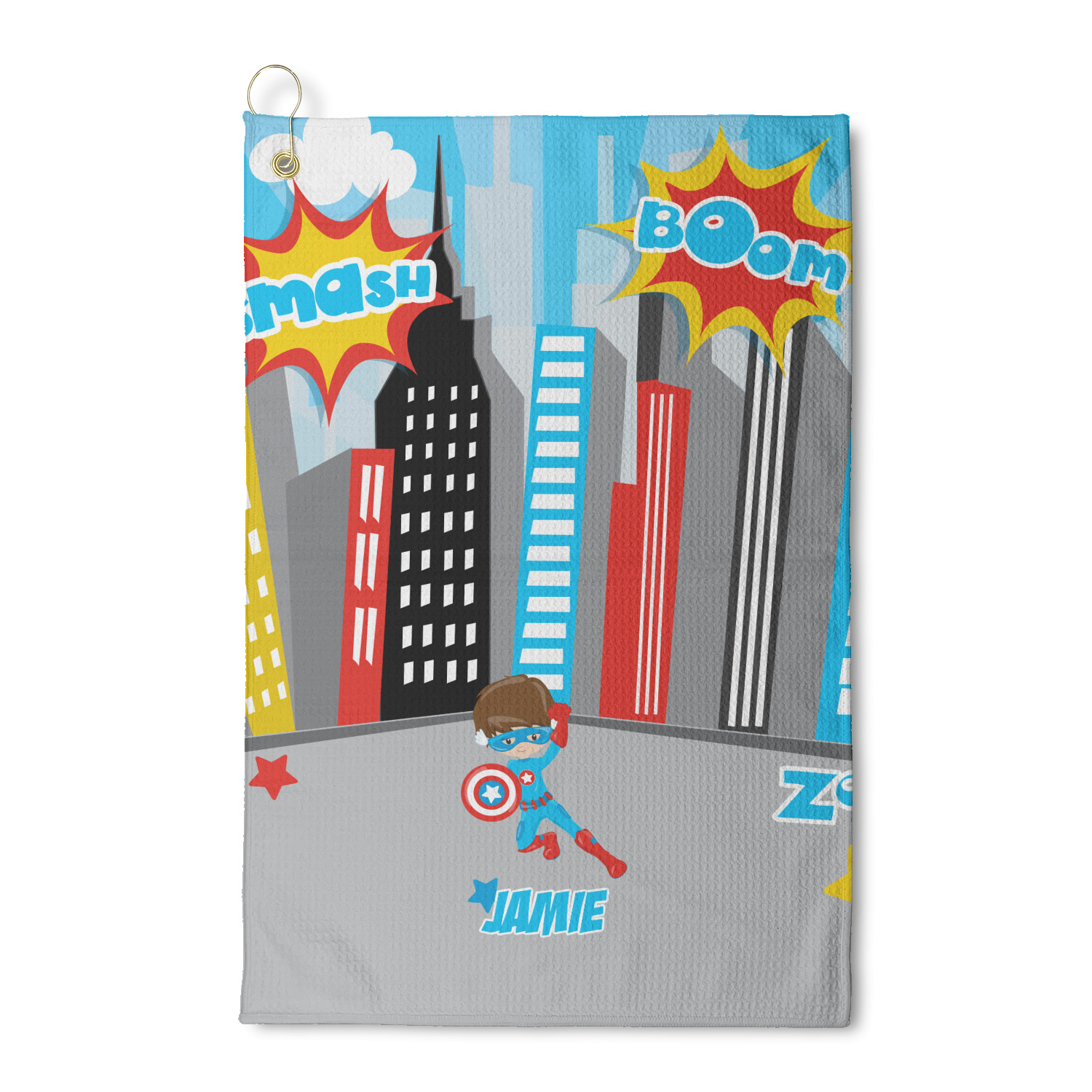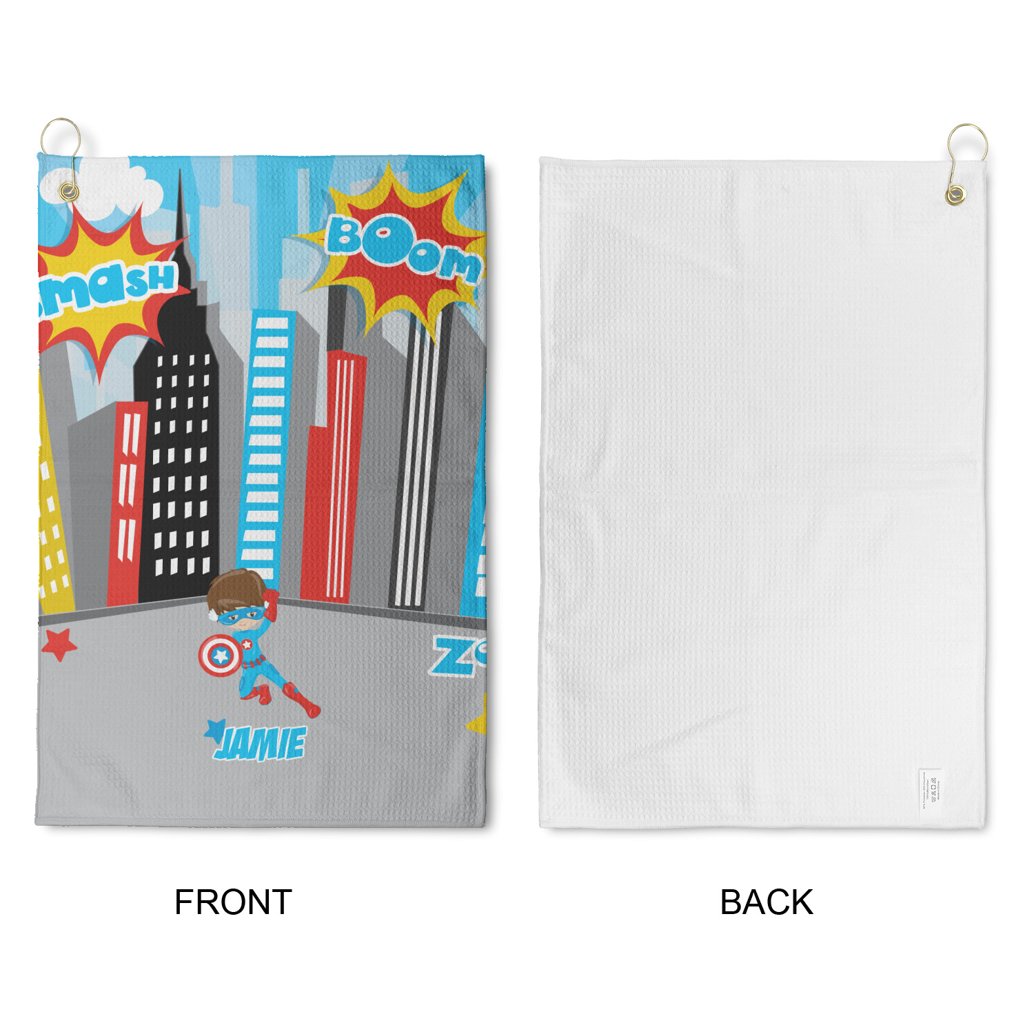 Personalize your design for your towel in our design studio then we will custom print and make it for you. The heavy duty brass grommet and hook are perfect for hanging anywhere you need it to. The waffle weave material is a durable microfiber material that will absorb up to 7 times its weight.