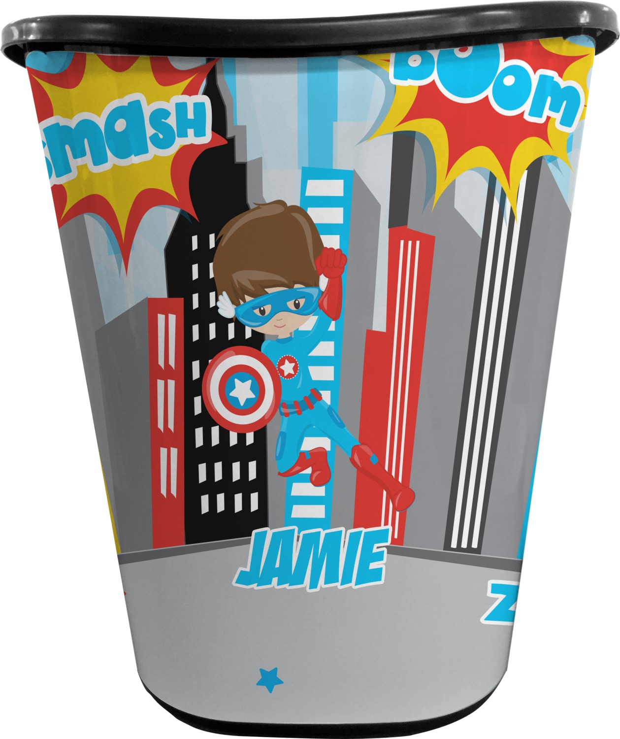 You can choose to purchase these decorative wastebaskets in either a white or a black color that will show on the base and the upper rim. Your customization is printed on a high-gloss, fine-quality vinyl adhesive, and you can choose to either have this adhesive applied to one side only or to both sides. As such, this plastic wastebasket can be single-sided or double-sided, depending on your creative vision. Your customization is printed using durable inks, making the design waterproof and resistant to fading over time.