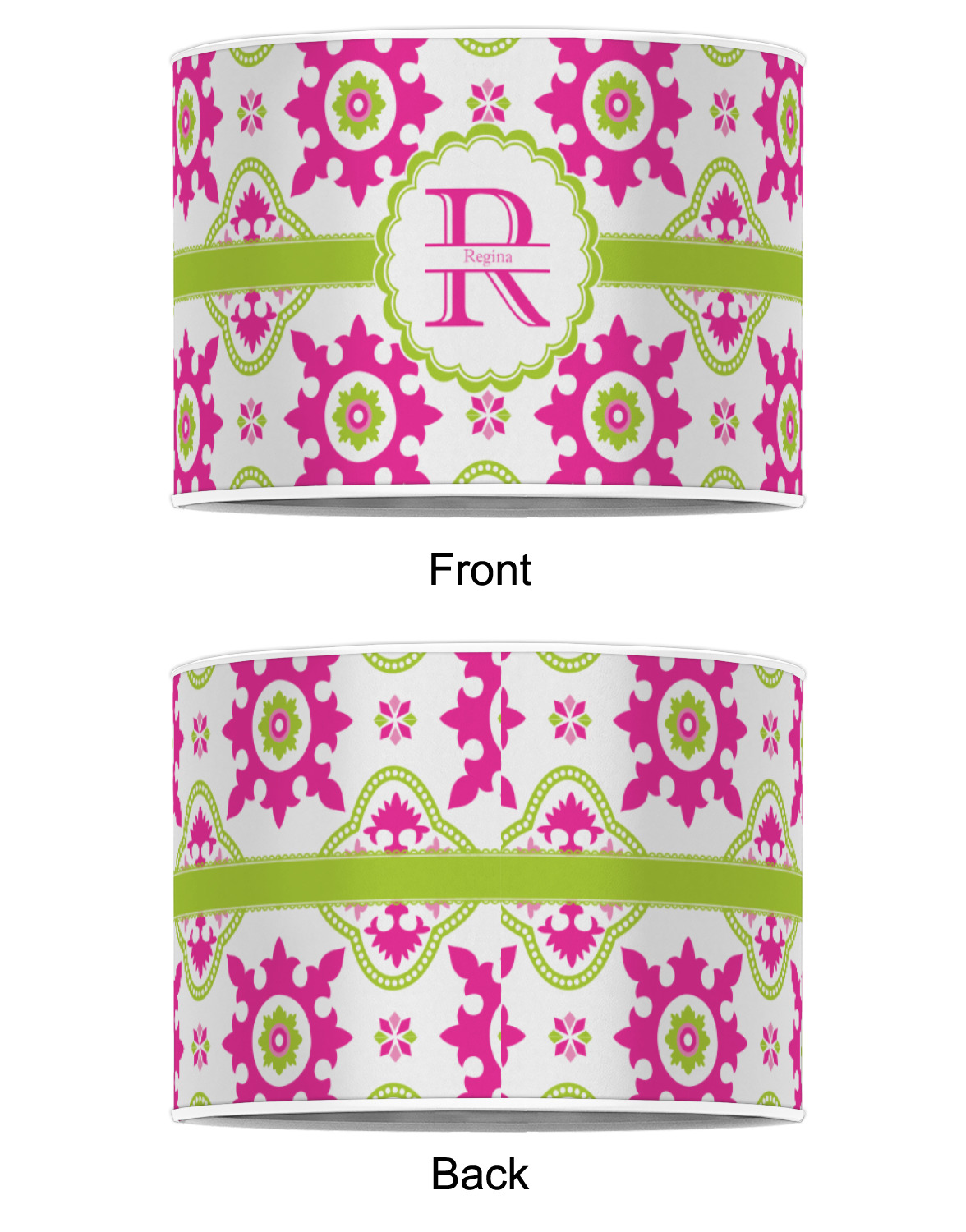 Our customized lamp shades also come in 3 different sizes: 8", 12" and 16", measuring at 8" in diameter by 6" tall, 12" in diameter by 8" tall, and 16" in diameter by 10" tall, respectively.