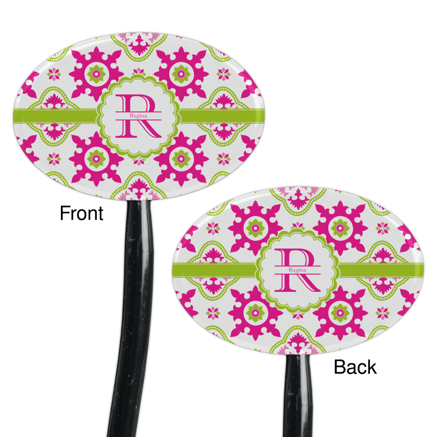 Looking for a girly girl design? This pink and green floral print with a scalloped label is as girly as it gets. We have created this intricate flower pattern in lime green, orchid pink and hot pink. For all of us girly girls and princesses, this is our first choice!