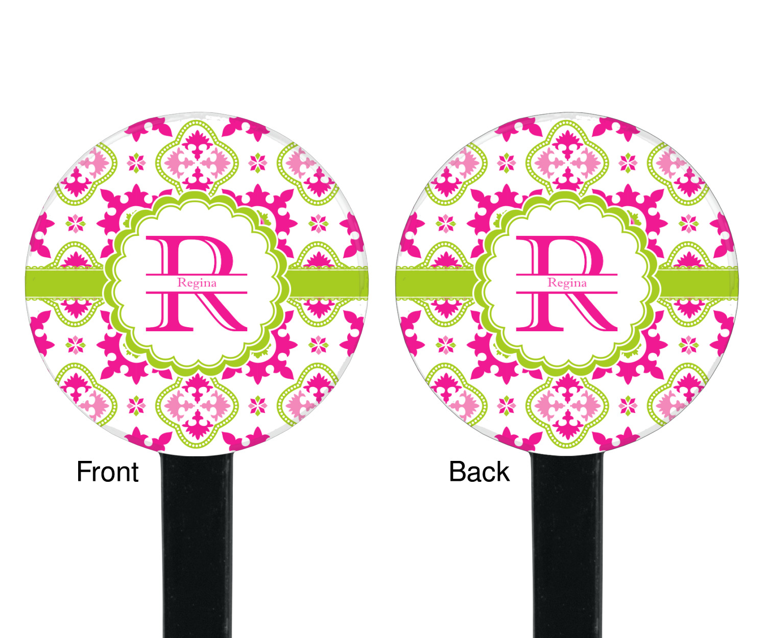 Looking for a girly girl design? This pink and green floral print with a scalloped label is as girly as it gets. We have created this intricate flower pattern in lime green, orchid pink and hot pink. For all of us girly girls and princesses, this is our first choice!